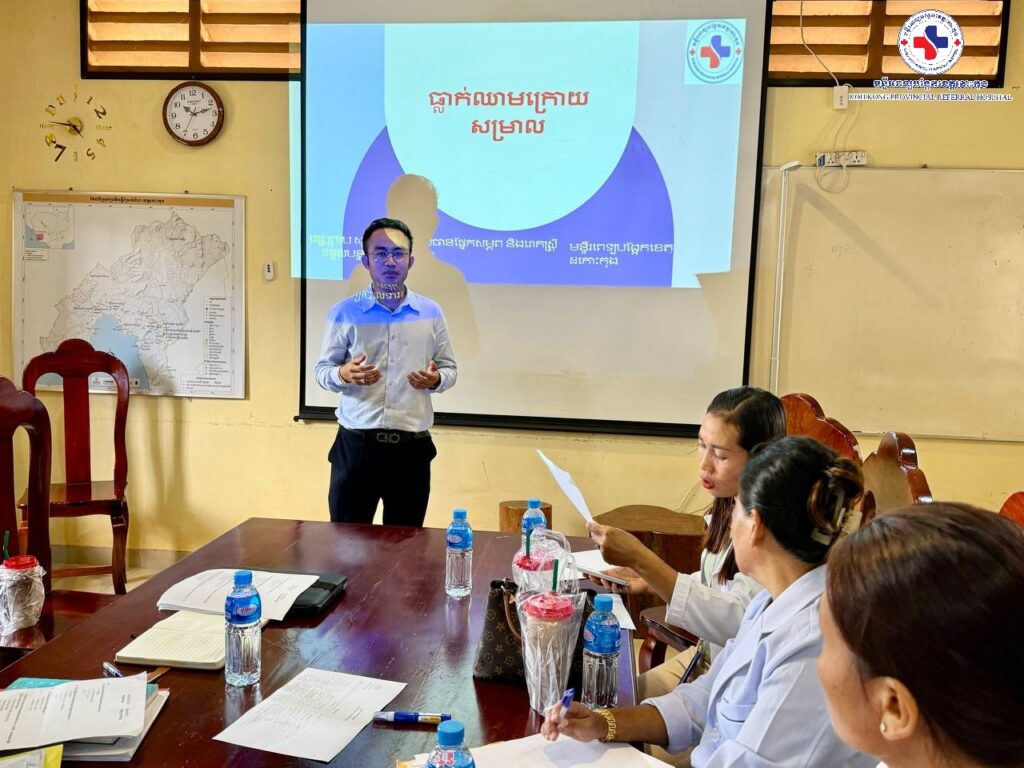 នៅថ្ងៃសុក្រ ១០រោច ខែជេស្ឋ ឆ្នាំម្សាញ់ សប្តស័ក ពុទ្ធសករាជ ២៥៦៩ ត្រូវនឹងថ្ងៃទី២០ ខែមិថុនា ឆ្នាំ២០២៥ មន្ត្រីមន្ទីរពេទ្យបង្អែកខេត្តកោះកុង ចំនួន២រូប គឺលោកវេជ្ជបណ្ឌិត ព្រាប សុភណ្ណារិទ្ធ អនុប្រធានផ្នែកសម្ភព និងរោគស្ត្រី និងលោកស្រី ចែម ច័ន្ទសុខា នាយសាលផ្នែកសម្ភព និងរោគស្ត្រី បានបណ្ដុះបណ្ដាលបច្ចេកទសនៃការគ្រប់គ្រងការធ្លាក់ឈាមក្រោយសម្រាល ដល់មន្ត្រីមន្ទីរពេទ្យបង្អែកស្រែអំបិល ។