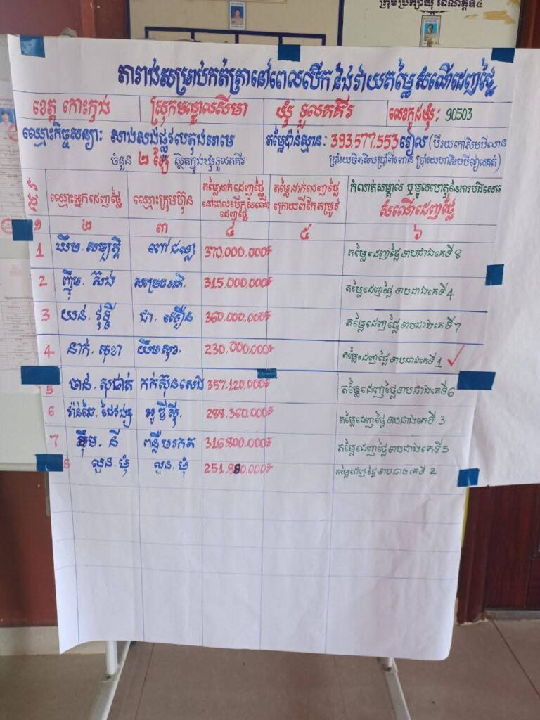 នៅសាលាឃុំទួលគគីរ បានបើកនូវកិច្ចប្រជុំរបស់គណៈកម្មការលទ្ធកម្មឃុំទួលគគីរ ដើម្បីធ្វើលទ្ធកម្មដេញថ្លៃគម្រោងអភិវឌ្ឍន៍ដោយប្រើប្រាស់មូលនិធិឃុំទួលគគីរ សម្រាប់ឆ្នាំ២០២៥ គឺគម្រោងសាងសង់ផ្លូវក្រួសបេតុងអាមេ ចំនួន ០២ខ្សែ ដោយខ្សែទី១ ប្រវែង០,២៥០គ.ម ទទឹង៦ម កម្រាស់ ០,១៥ម ស្ថិតនៅភូមិកោះចាក និងខ្សែទី២ ប្រវែង ០,២៣០គ.ម ទទឹង៦ម កម្រាស់ ០,១៥ម ដោយលើកដីគ្រឹះក្រោមប្រវែង ០,២៣០គ.ម ទទឹង៧ម កម្រាស់ ០,២០ម ស្ថិតនៅភូមិទួលគគីរក្រោម និងដាក់ស្លាកសញ្ញាគម្រោង០១កន្លែង ក្នុងតម្លៃគម្រោងប៉ាន់ស្មានចំនួន ៣៩៣.៥៧៧.៥៥៣រៀល ក្រោមអធិបតីភាពរបស់លោក ឡេក ស៊ុធន់ ប្រធានគណៈកម្មការលទ្ធកម្មឃុំ និងជាមេឃុំទួលគគីរ ។