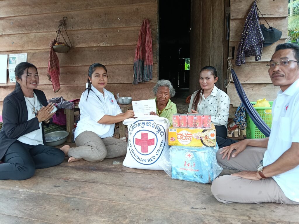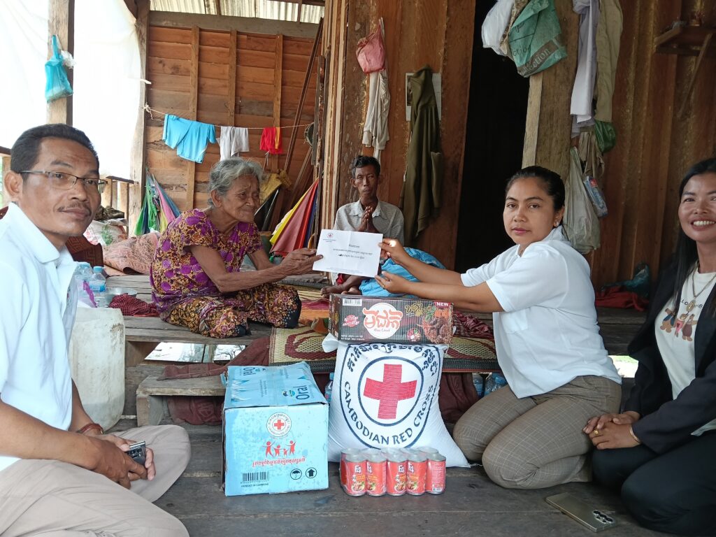 កាកបាទក្រហមជូនចាស់ជរាចំនួន ៤ គ្រួសារនៅឃុំជីផាត ក្នុង ១ គ្រួសារទទួលបាន
