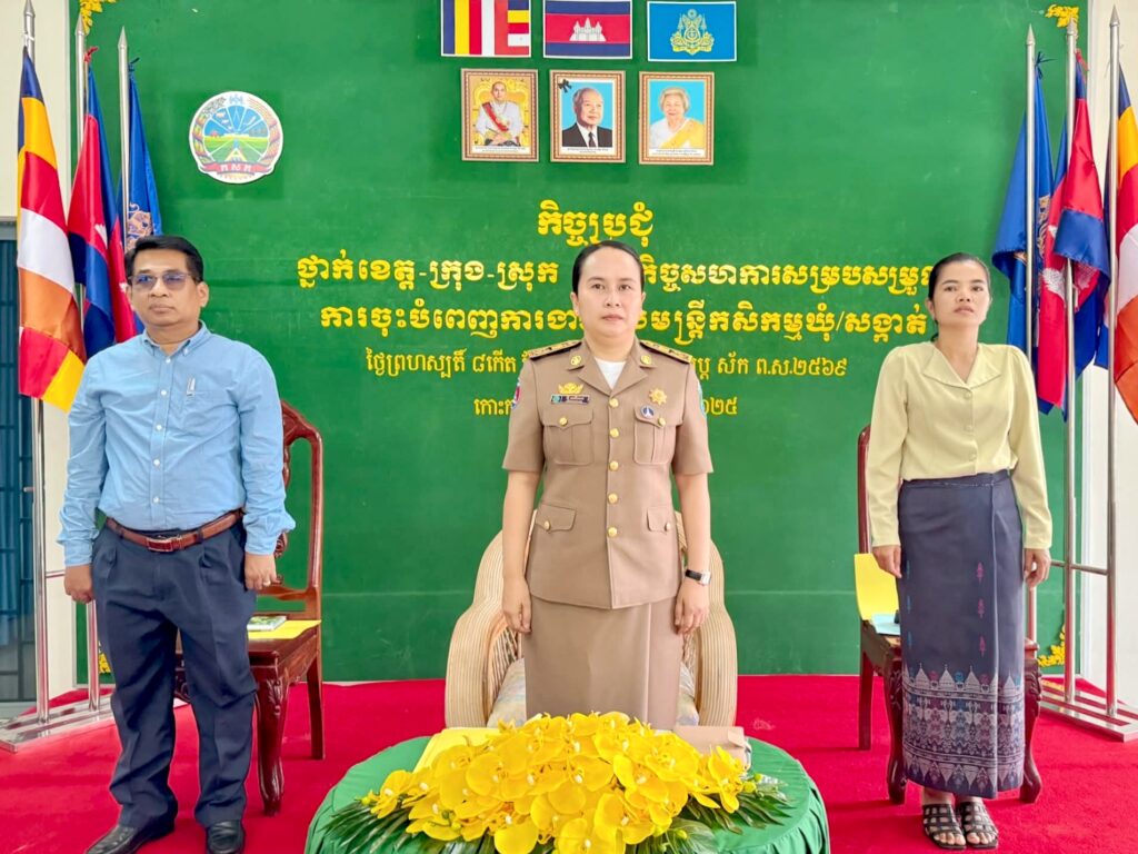 លោកស្រី ទួត ហាទីម៉ា អភិបាល នៃគណៈអភិបាលស្រុកថ្មបាំង និងលោកប្រធានការិយាល័យសេដ្ឋកិច្ច និងអភិវឌ្ឍន៍សហគមន៍ស្រុក បានចូលរួមកិច្ចប្រជុំ ស្តីពីកិច្ចសហការសម្របសម្រួលការចុះបំពេញការងាររបស់មន្ត្រីកសិកម្មឃុំ/សង្កាត់