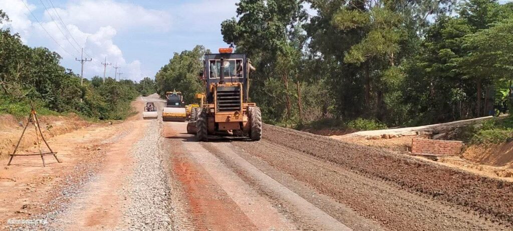 -បន្តការងារថែទាំខួបលើផ្លូវខេត្តលេខ1485a ឃុំថ្មស ស្រុកបូទុមសាគរ ខេត្តកោះកុង សកម្មភាពការងារ កៀរ កិន បង្ហាប់ល្បាយថ្មម៉ិច M30 ធ្វើគ្រឹះសំខាន់ ត្រង់ចន្លោះ PK27+000 – PK27+300។
