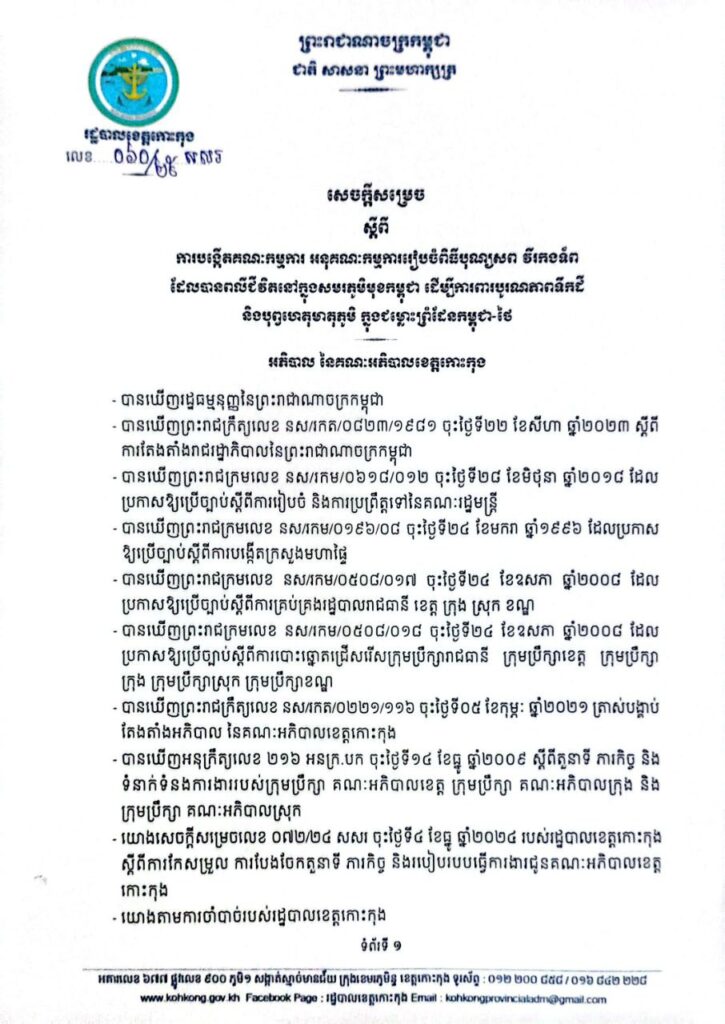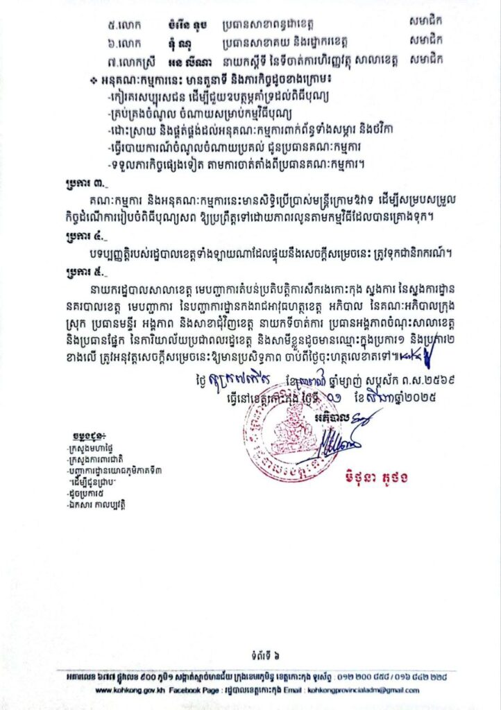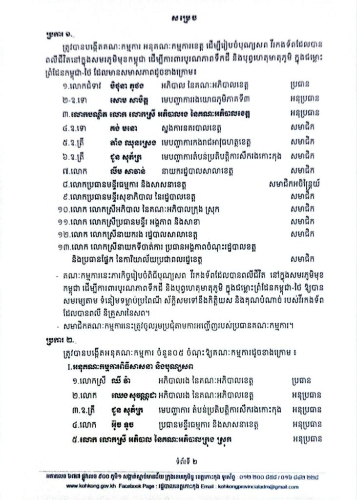 សេចក្តីសម្រេច ស្តីពីការបង្កើតគណៈកម្មការ អនុគណៈកម្មការរៀបចំពិធីបុណ្យសព វីរកងទ័ព ដែលបានពលីជីវិតនៅក្នុងសមរភូមិមុខកម្ពុជា ដើម្បីការពារបូរណភាពទឹកដី និងបុព្វហេតុហតុភូមិ ក្នុងជម្លោះព្រំដែនកម្ពុជា-ថៃ