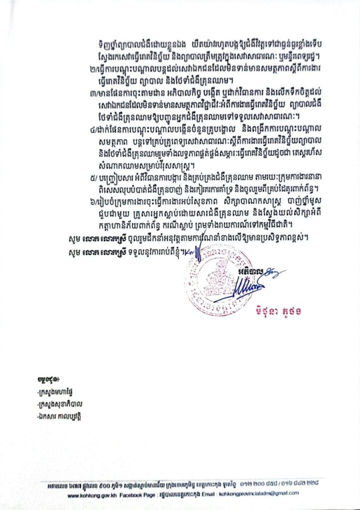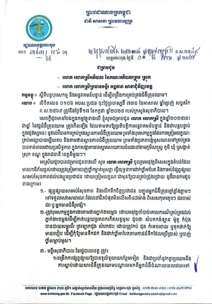 សេចក្តីជូនដំណឹង ស្តីពីបន្តបុរេសកម្ម និងអន្តរាគមន៍បន្ទាន់ ដើម្បីពង្រឹងការគ្រប់គ្រងជំងឺគ្រុនឈាម