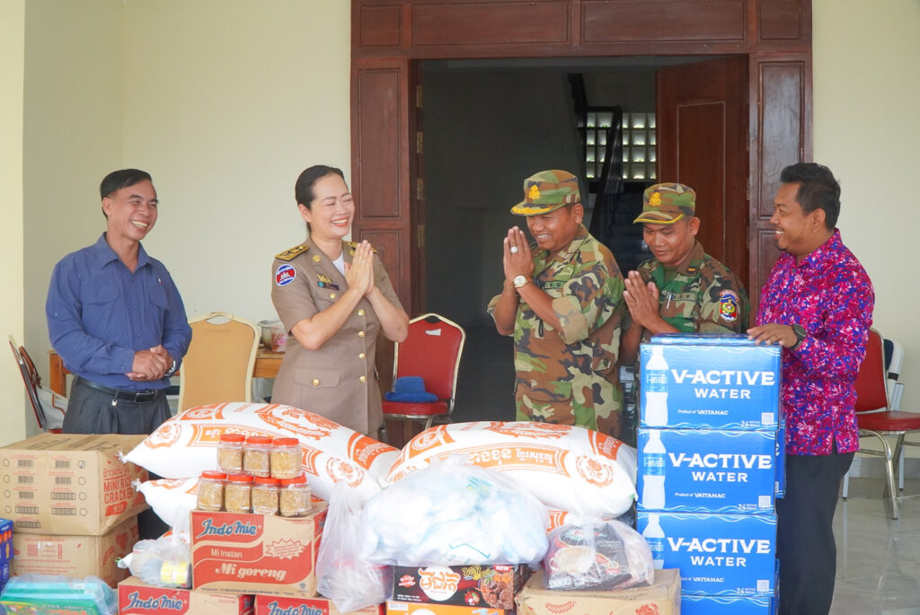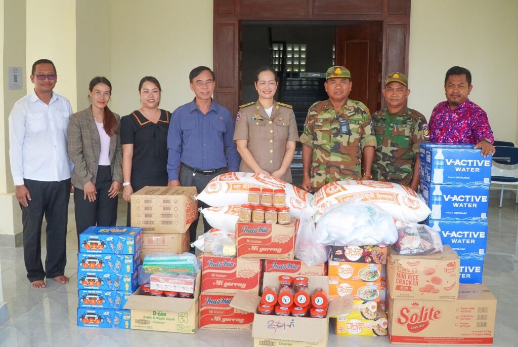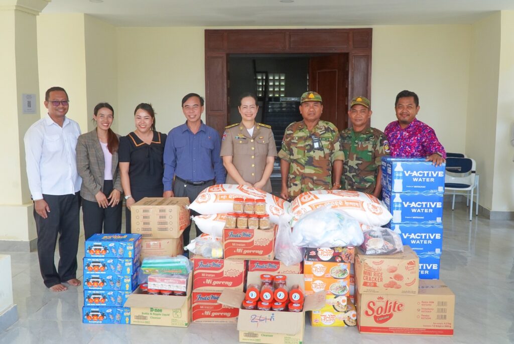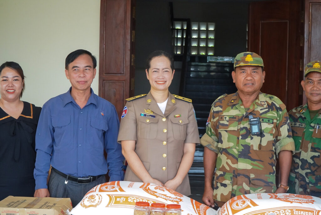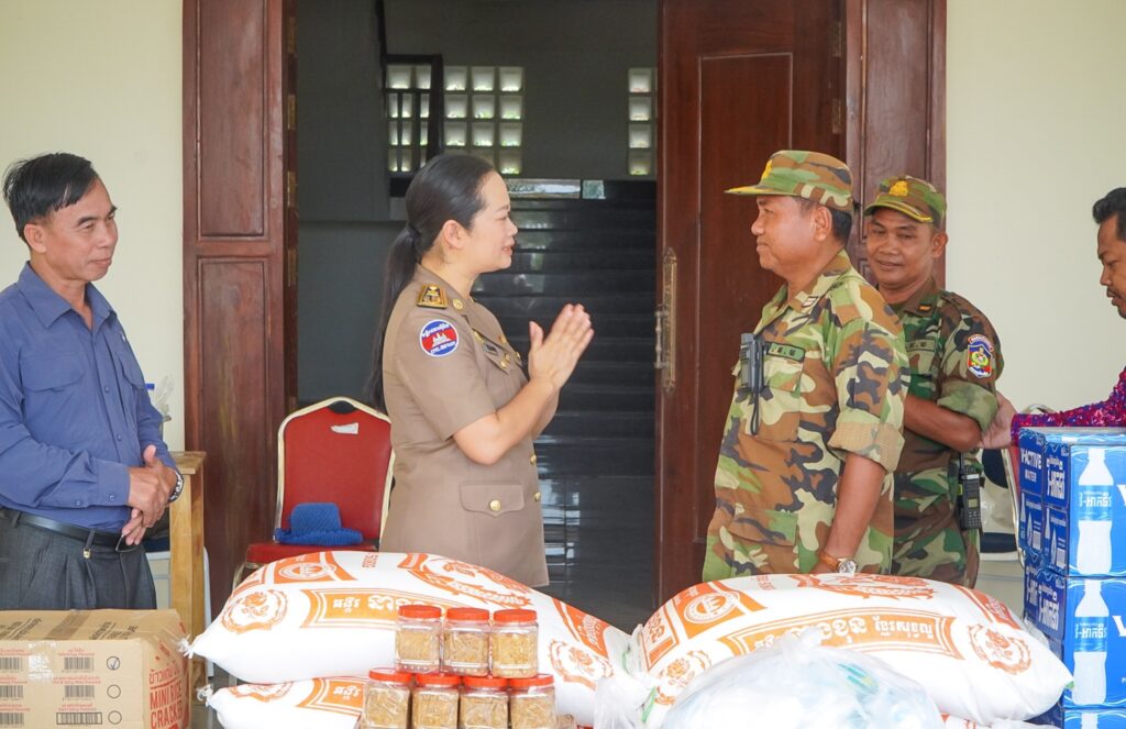 លោកស្រី ឈី វ៉ា អភិបាលរង នៃគណៈអភិបាលខេត្តកោះកុង តំណាងលោកជំទាវ មិថុនា ភូថង អភិបាល នៃគណៈអភិបាលខេត្ត បានអញ្ជើញប្រគល់គ្រឿងឧបភោគ បរិភោគ និងសម្ភារមួយចំនួន ជូនបញ្ជាការដ្ឋានផ្នែកសឹករងស្រុកមណ្ឌលសីមា