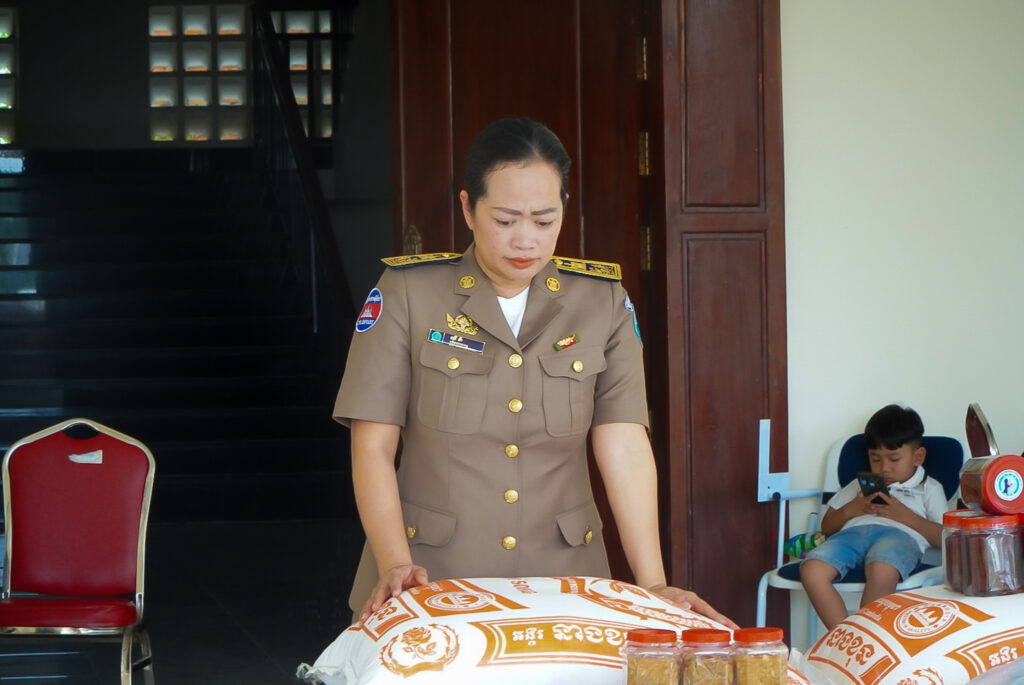 លោកស្រី ឈី វ៉ា អភិបាលរង នៃគណៈអភិបាលខេត្តកោះកុង តំណាងលោកជំទាវ មិថុនា ភូថង អភិបាល នៃគណៈអភិបាលខេត្ត បានអញ្ជើញប្រគល់គ្រឿងឧបភោគ បរិភោគ និងសម្ភារមួយចំនួន ជូនបញ្ជាការដ្ឋានផ្នែកសឹករងស្រុកមណ្ឌលសីមា។