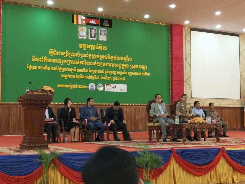 លោក ហេង នាង ប្រធានការិយាល័យប្រជាពលរដ្ឋ បានចូលរួមវគ្គតម្រង់ទិសស្តីពីការប្រើប្រាស់ប្រព័ន្ធគ្រប់គ្រងទិន្នន័យបណ្តឹងនិងព័ត៌មានផ្សេងៗរបស់ការិយាល័យប្រជាពលរដ្ឋក្រុង ស្រុក ខណ្ឌនៅសាលាខេត្តកំពតពីថ្ងៃទី០៦-០៧ខែសីហាឆ្នាំ២០២៥
