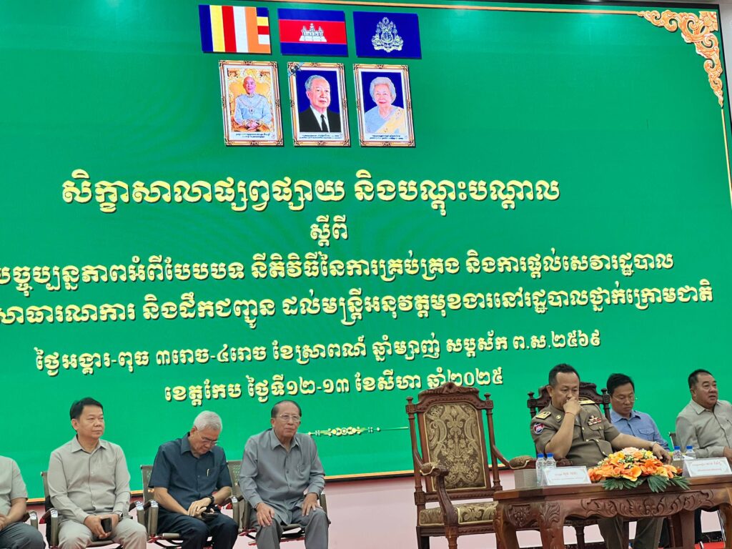 លោក ក្រូច​ បូរីសីហា​  អភិបាលនៃគណៈអភិបាលស្រុក បានដឹកនាំ ប្រធានការិយាល័យច្រកចេញចូលតែមួយ និងមន្ត្រីជួរក្រោយទទួលបន្ទុកការងារផ្តល់សេវារដ្ឋបាល ក្នុងវិស័យសាធារណការ និងដឹកជញ្ជូន ចូលរួមសិក្ខាសាលាផ្សព្វផ្សាយ និងការបណ្តុះ បណ្តាលធ្វើបច្ចុប្បន្នភាពអំពីបែបបទ នីតិវិធីនៃការគ្រប់គ្រង និង ការផ្តល់សេវារដ្ឋបាលក្នុងវិស័យសាធារណការ និងដឹកជញ្ជូន ដល់មន្ត្រីអនុវត្តមុខងារនៅរដ្ឋបាលថ្នាក់ក្រោមជាតិ ក្រោមអធិបតី ភាពឯកឧត្តម សួន​ រចនា រដ្ឋលេខាធិការ និងជាអនុប្រធានប្រចាំ ការនៃគណៈកម្មាការដឹកនាំកំណែទម្រង់វិមជ្ឈការ និងវិសហមជ្ឈការក្រសួងសាធារណការ និងដឹកជញ្ជូន និងឯកឧត្តម បណ្ឌិត​ សោម ពិសិដ្ឋ អភិបាល នៃគណៈភិបាលខេត្តកែប ។