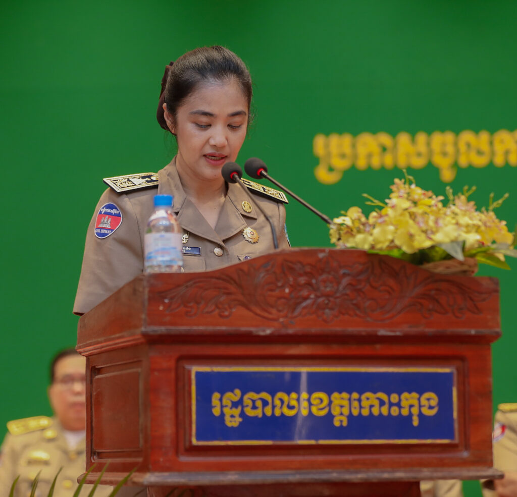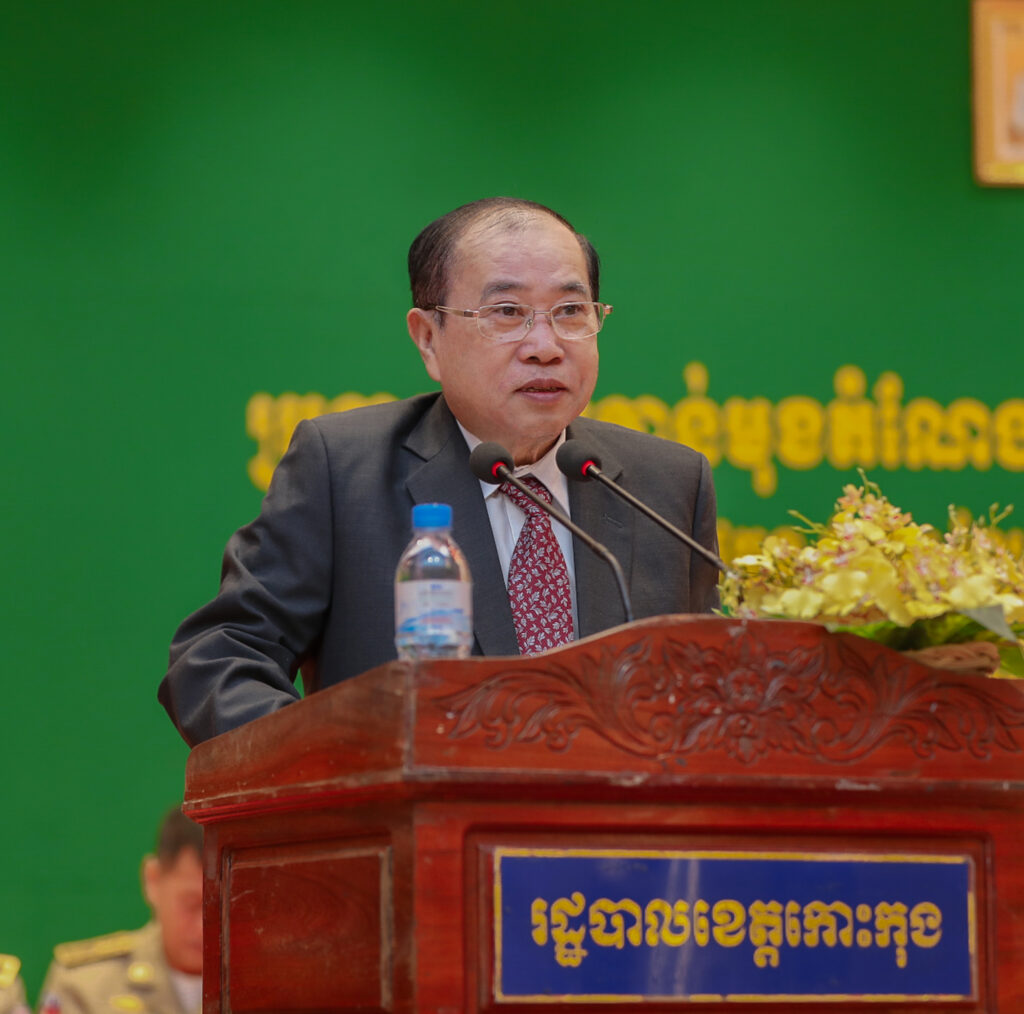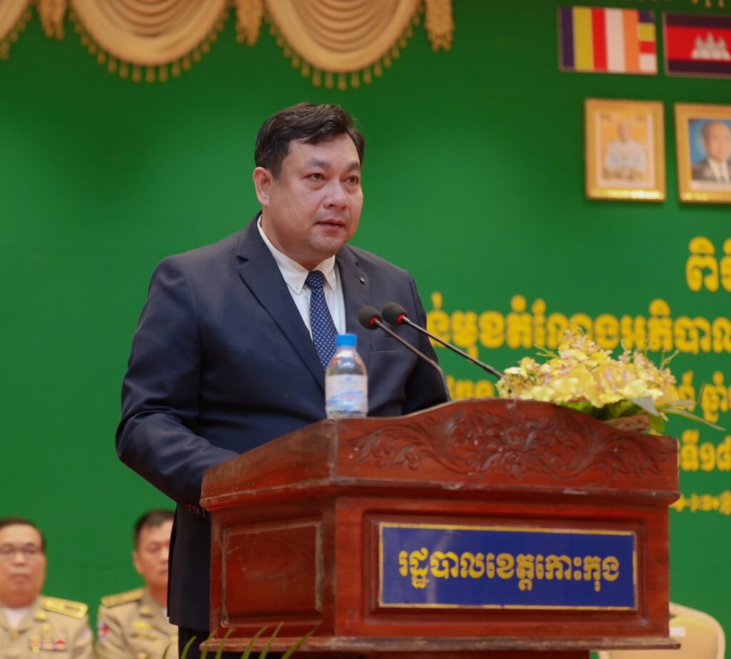 លោកជំទាវ មិថុនា ភូថង អភិបាល នៃគណៈអភិបាលខេត្តកោះកុង បានអញ្ជើញស្វាគមន៍ឯកឧត្តម អ៊ុំ ម៉ារ៉ា រដ្ឋលេខាធិការ ក្រសួងមហាផ្ទៃ តំណាងដ៏ខ្ពង់ខ្ពស់ ឯកឧត្តមអភិសន្តិបណ្ឌិត ស សុខា ឧបនាយករដ្ឋមន្ត្រី រដ្ឋមន្ត្រីក្រសួងមហាផ្ទៃ ក្នុងពិធីប្រកាសចូលកាន់មុខតំណែងអភិបាលរង នៃគណៈអភិបាលខេត្តកោះកុង