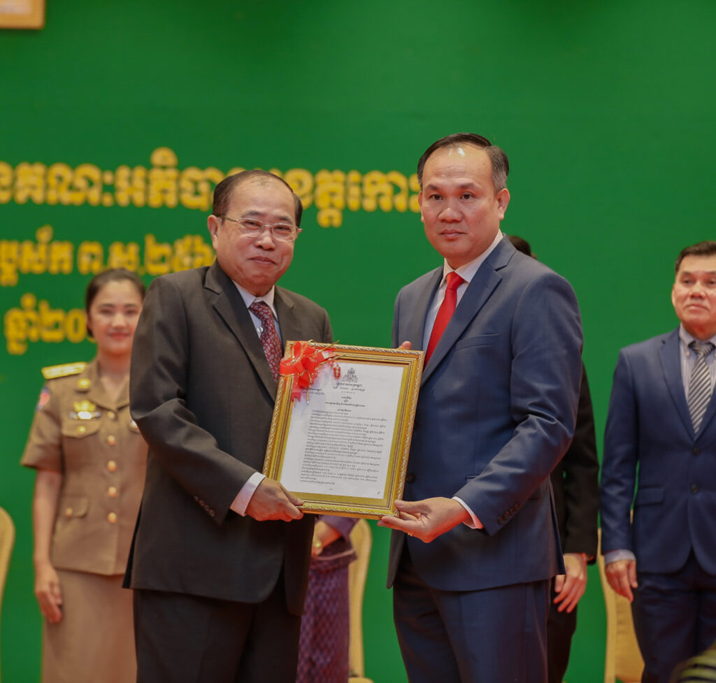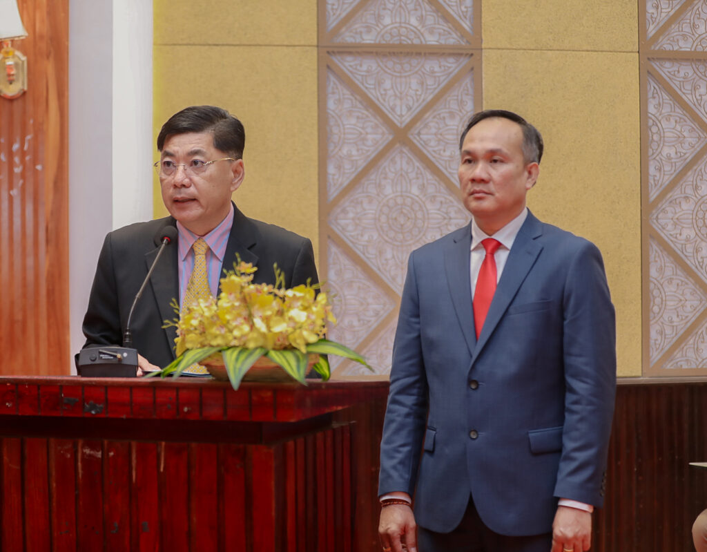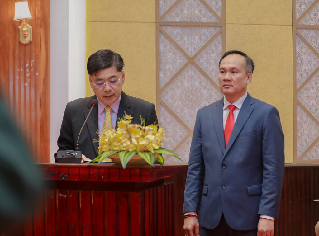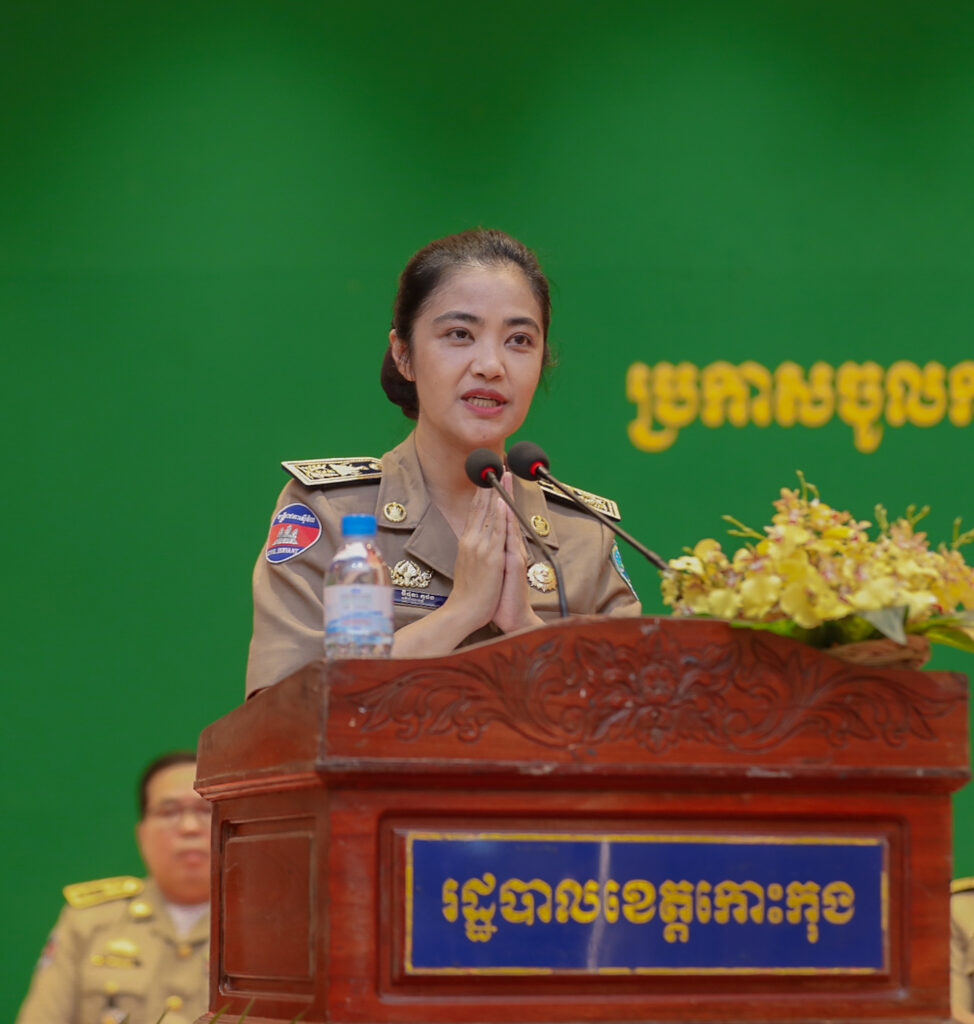 លោកជំទាវ មិថុនា ភូថង អភិបាល នៃគណៈអភិបាលខេត្តកោះកុង បានអញ្ជើញស្វាគមន៍ឯកឧត្តម អ៊ុំ ម៉ារ៉ា រដ្ឋលេខាធិការ ក្រសួងមហាផ្ទៃ តំណាងដ៏ខ្ពង់ខ្ពស់ ឯកឧត្តមអភិសន្តិបណ្ឌិត ស សុខា ឧបនាយករដ្ឋមន្ត្រី រដ្ឋមន្ត្រីក្រសួងមហាផ្ទៃ ក្នុងពិធីប្រកាសចូលកាន់មុខតំណែងអភិបាលរង នៃគណៈអភិបាលខេត្តកោះកុង