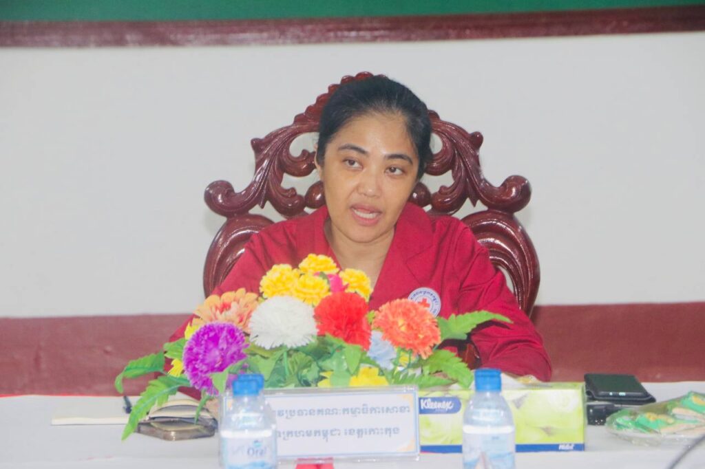 សាខា កក្រក ខេត្តកោះកុង៖ នៅសាលប្រជុំសាខា រសៀលថ្ងៃទី២០ ខែសីហា ឆ្នាំ២០២៤ លោកជំទាវ មិថុនា ភូថង ប្រធានគណៈកម្មាធិការសាខាកាកបាទក្រហមកម្ពុជាខេត្តកោះកុង បានដឹកនាំកិច្ចប្រជុំបូកសរុបលទ្ធផលសកម្មភាពការងារ និងហិរញ្ញវត្ថុ ឆមាសទី១ ឆ្នាំ២០២៥ និងលើកទិសដៅភារកិច្ចបន្ត របស់សាខាកាកបាទក្រហមកម្ពុជាខេត្តកោះកុង ដែលមានការចូលរួមពីឯកឧត្តមអនុប្រធាន សមាជិក សមាជិកាគណៈកម្មាធិការសាខា ប្រធាន និងតំណាងសមាជិក សមាជិកាអនុសាខាទាំង៧ ក្រុង/ស្រុក ប្រធាន អនុប្រធានក្រុមការងារប្រចាំមន្ទីរអង្គភាព ក្រុមប្រិតបត្តសាខា សរុប២១នាក់ ។