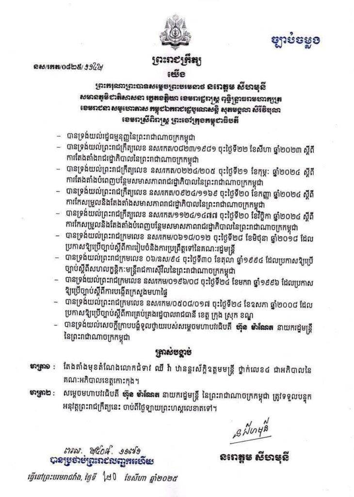 សារលិខិតអបអរសាទរ គោរពជូនចំពោះ លោកជំទាវ ឈី វ៉ា ពីលោក អន ដាវុធ ប្រធានមន្ទីរសាធារណការ និងដឹកជញ្ជូនខេត្តកោះកុង ព្រមទាំងមន្ត្រីរាជការ មន្ត្រីជាប់កិច្ចសន្យាក្រោមឱវាទទាំងអស់ ក្នុងឱកាសដែលលោកជំទាវត្រូវបានព្រះមហាក្សត្រត្រាស់បង្គាប់តែងតាំងជា អភិបាល នៃគណៈអភិបាលខេត្តកោះកុង