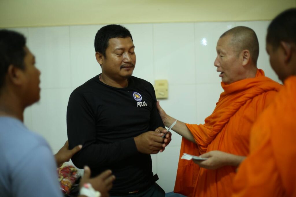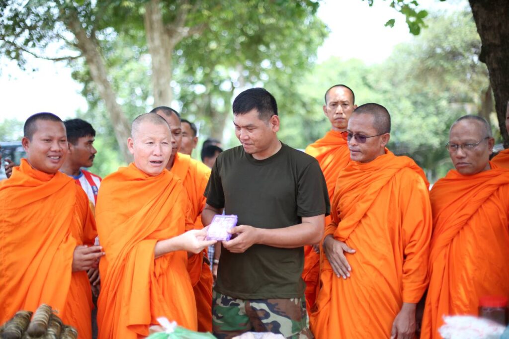 ព្រះធម្មានុរក្ខ័បាល លី វិចិត្រ ព្រះរាជាគណៈថ្នាក់កិត្តិយសគណៈមហានិកាយនៃព្រះរាជាណាចក្រកម្ពុជា ជាព្រះទីបធម្មាភិបាល ព្រះបាឡាត់គណខេត្តកោះកុង ជាព្រះចៅអធិការវត្តទព័ជាង និងជាព្រះប្រធានកិត្តិយសក្រុមការងារសាខាសមាគមសិស្ស និស្សិតបញ្ញវន្ត ក្មេងវត្ត ខេត្តកោះកុង បាននាំយកទ័យ្យទាន ជូនកងទ័ពជួរមុខនៅភ្នំខ្មោច និងចូលសួរសុខទុក្ខវិរៈកងទ័ពជួរតំបន់ភ្នំខ្មោចសម្រាកព្យាបាលនៅមន្ទីរពេទ្យ
