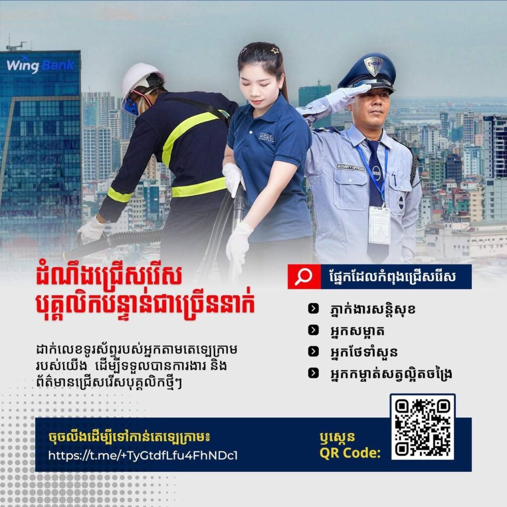 ក្រុមហ៊ុន សន្តិសុខ ជីអេស អេស ត្រូវការជ្រើសរើសសន្តិសុខ ចំនួន ១៤នាក់ ប្រាក់ខែ ២៨០ដុល្លារ និងអ្នកគ្រប់គ្រង់សន្តិសុខ ១នាក់ ចេះភាសាចិន ប្រាក់ខែ ១ ២០០ដុល្លារ ចាប់ផ្តើមចូលធ្វើការនៅ ថ្ងៃទី១ កញ្ញា ២០២៥ ទីតាំងបំពេញការងារនៅ ភូមិថ្មស ឃុំថ្មស ស្រុកបូទុមសាគរ ខេត្តកោះកុង លេខទូរស័ព្ទ : 089 913 567 / 016 379 339