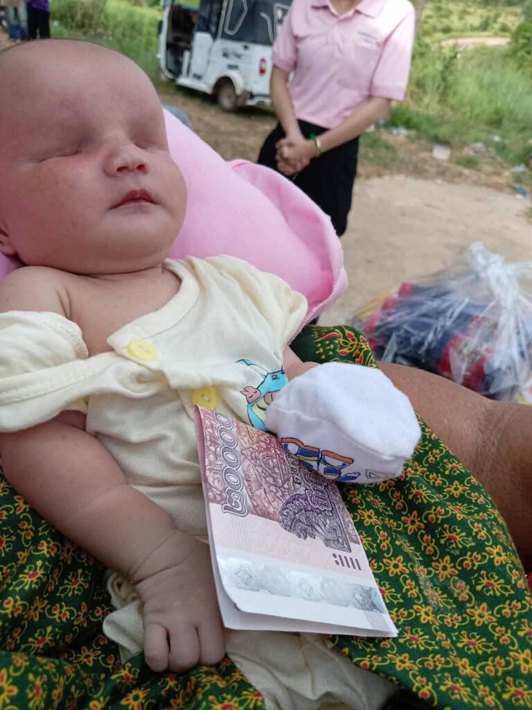 លោកស្រី ប្រាក់ គឹមហ៊ន សមាជិកក្រុមប្រឹក្សាឃុំប៉ាក់ខ្លង និងមេភូមិចាំយាម បានចូលរួមជាមួយលោក គង់ សំរិទ្ធ ប្រធានមន្ទីរសង្គមកិច្ច អតីតយុទ្ធជន និងយុវនីតិសម្បទាខេត្តកោះកុង ដឹកនាំមន្ត្រីចំនួន ០៣រូប ចុះសួរសុខទុក្ខគ្រួសារកុមារី រឿន សុម៉ាលីន ដែលទើបតែកើតរយៈពេល ១៥ថ្ងៃ មានពិការភាព (ពុំមានកែវភ្នែកសងខាង) ពីកំណើត ស្ថិតនៅភូមិចាំយាម ឃុំប៉ាក់ខ្លង ស្រុកមណ្ឌលសីមា ខេត្តកោះកុង។