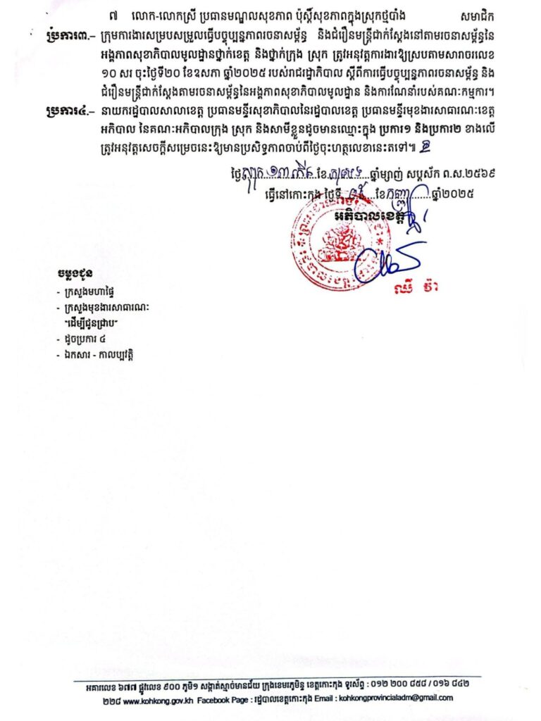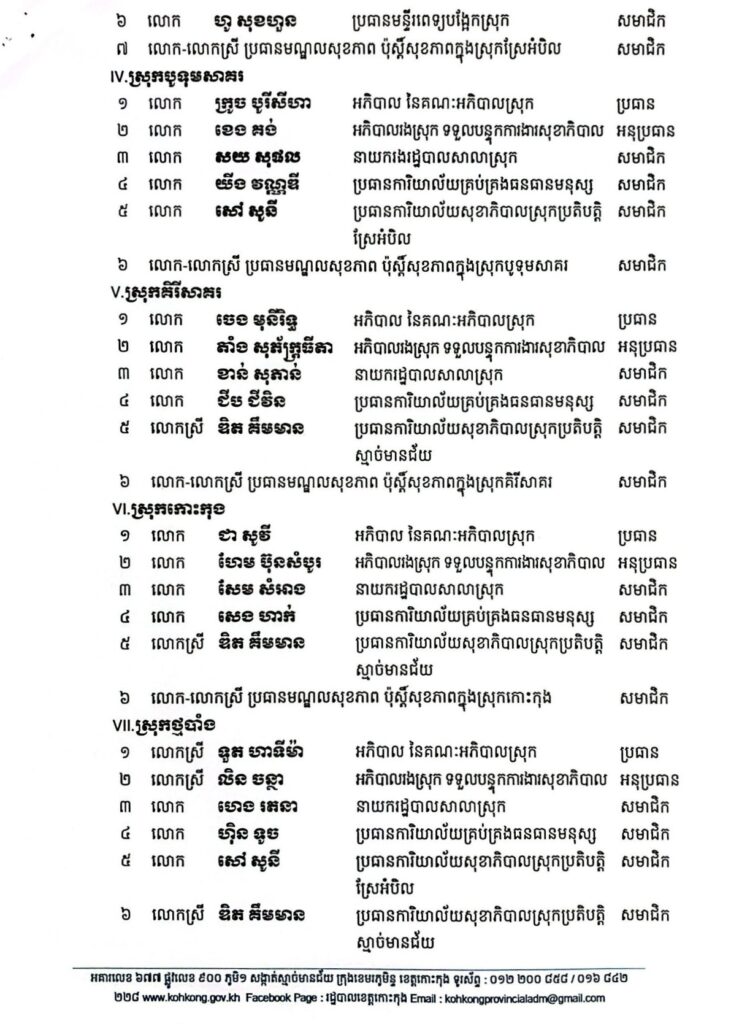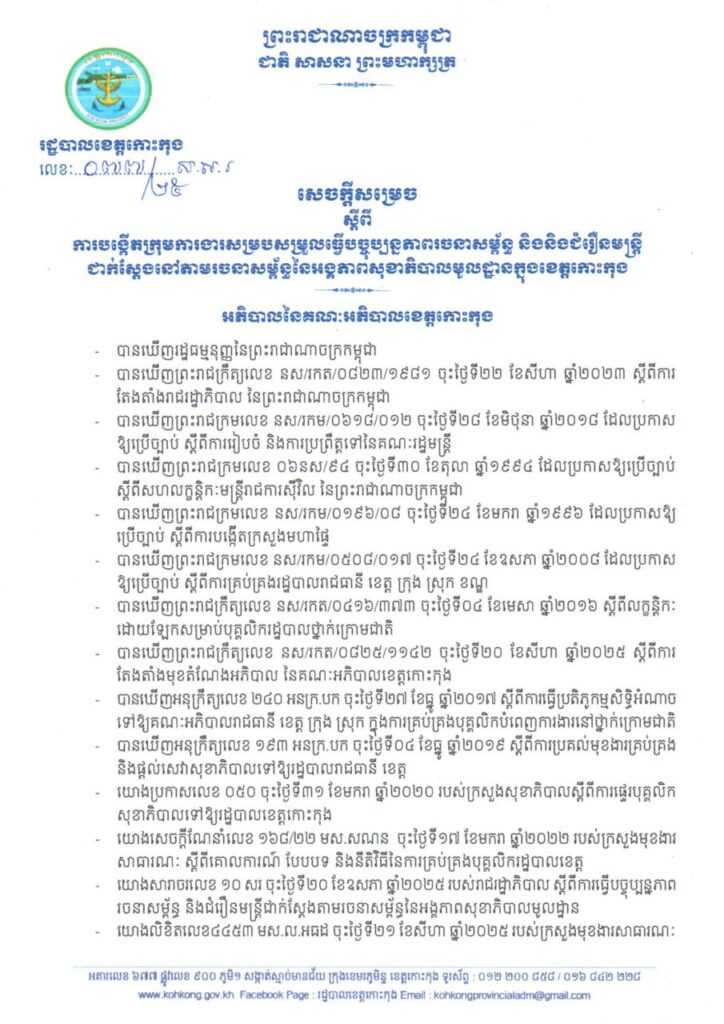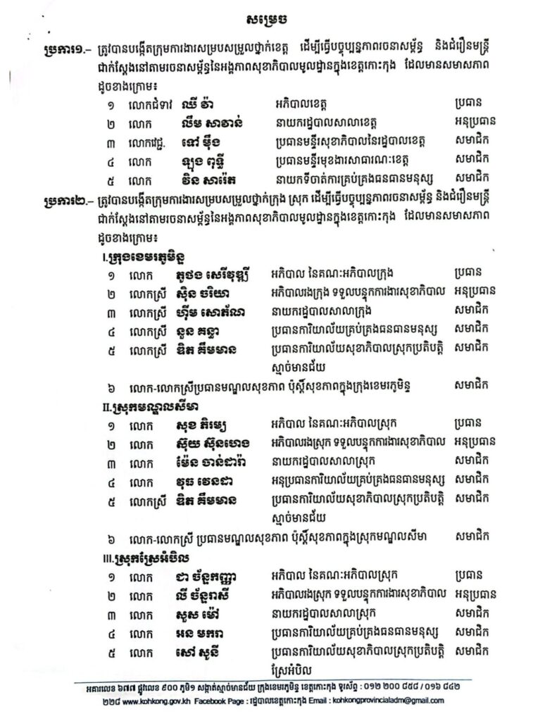 សេចក្តីសម្រេច ស្តីពីការបង្កើតក្រុមការងារសម្របសម្រួលធ្វើបច្ចុប្បន្នភាពរចនាសម្ព័ន្ធ និងជំរឿនមន្ត្រី ជាក់ស្តែងនៅតាមរចនាសម្ព័ន្ធនៃអង្គភាពសុខាភិបាលមូលដ្ឋានក្នុងខេត្តកោះកុង