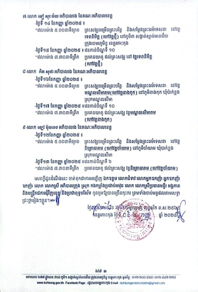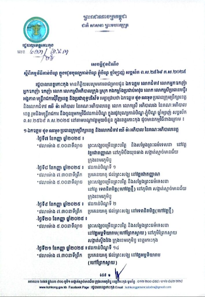សេចក្តីជូនដំណឹង ស្តីពីកម្មវិធីកាន់បិណ្ឌ ក្នុងរដូវបុណ្យកាន់បិណ្ឌ ភ្ជុំបិណ្ឌ ឆ្នាំម្សាញ់ សប្តស័ក ព.ស.២៥៦៩ គ.ស.២០២៥