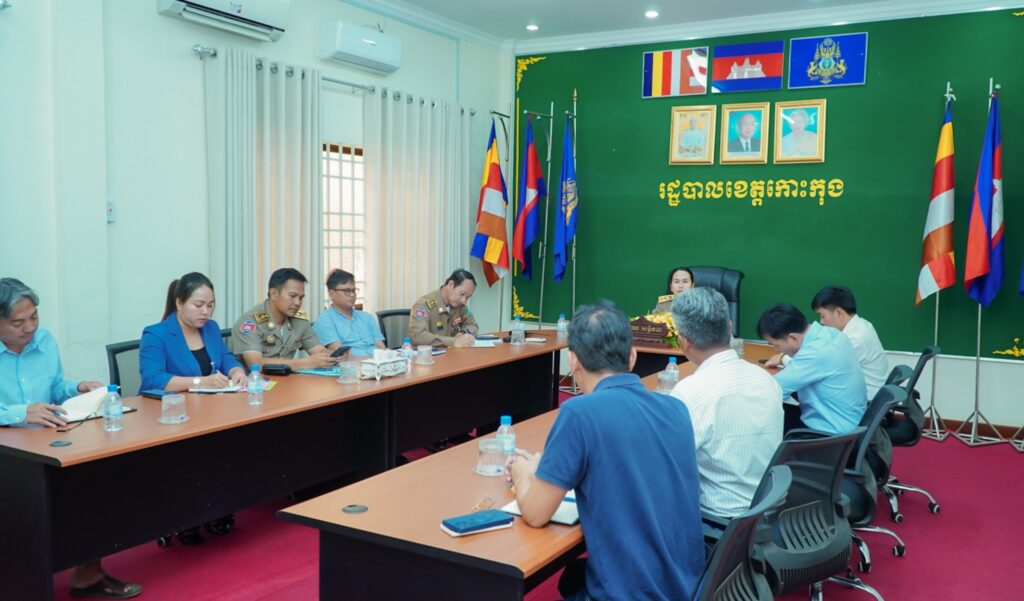 លោកស្រី អ៉ី នារីនេត អភិបាលរង នៃគណៈអភិបាលខេត្តកោះកុង បានអញ្ជើញជាអធិបតីដឹកនាំកិច្ចប្រជុំ ជាមួយតំណាងក្រុមហ៊ុន ដើម្បីពិភាក្សាលើការអនុវត្តគម្រោងសាងសង់ វិថីអាហារ និងគម្រោងផ្សារក្តាមកោះកុង។