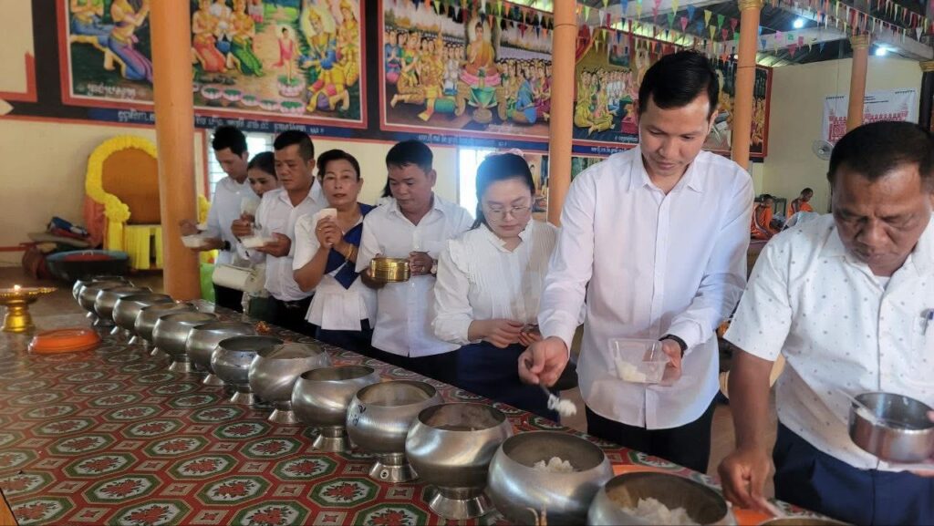 លោក ហ៊ុយ សំណាង មេឃុំកណ្ដោល បានដឹកនាំក្រុមប្រឹក្សាឃុំ មេភូមិ អនុភូមិចូលរួមអមដំណើរ លោក តុង យ៉ាវ អភិបាលរងស្រុក និងជាប្រធានក្រុមការងារថ្នាក់ស្រុក ចុះមូលដ្ឋានឃុំកណ្ដោល តំណាង លោក ក្រូច បូរីសីហា អភិបាលនៃគណៈអភិបាលស្រុក បាននាំយក ទេយ្យទាន និងបច្ច័យ ប្រគេនព្រះសង្ឃ ចូលរួមក្នុងវេនកាន់បិណ្ឌ នៅវត្តពោធិ៍រង្សី(វត្តកណ្ដោល)