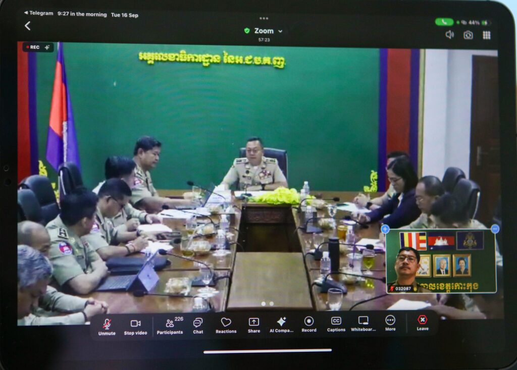 លោក ហាក់ ឡេង អភិបាលរង នៃគណៈអភិបាលខេត្តកោះកុង បានអញ្ជើញចូលរួម ក្នុងកិច្ចប្រជុំត្រួតពិនិត្យការងារទូរស័ព្ទដៃ No Drug តាមរយៈប្រព័ន្ធ Zoom ។ថ្ងៃអង្គារ ៩រោច ខែភទ្របទ ឆ្នាំម្សាញ់ សប្តស័ក ពុទ្ធសករាជ ២៥៦៩ ត្រូវនឹងថ្ងៃទី១៦ ខែកញ្ញា ឆ្នាំ២០២៥