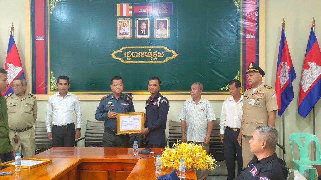 លោក ខេង សំខាន់ អភិបាលរងស្រុក តំណាងលោក ក្រូច បូរីសីហា អភិបាល នៃគណៈអភិបាលស្រុក បានអញ្ជើញជាអធិបតី ក្នុងពិធីសំណេះសំណាលចែកប័ណ្ណសរសើរ និងប្រគល់ឯកសណ្ឋានជូនប្រជាការពារក្នុងមូលដ្ឋានឃុំថ្មស ដោយមានការអញ្ជើញចូលរួមពីលោកមេបញ្ជាការកងរាជអាវុធស្រុក លោកអធិការរងស្រុក ក្រុមការងារស្រុក លោកមេឃុំ និងលោកស្រីក្រុមប្រឹក្សាឃុំ ប៉ុស្តិ៍រដ្ឋបាលឃុំ និងលោកភូមិទាំង៥ ព្រមទាំងបងប្អូនប្រជាការពារចំនួន ៧០នាក់ ស្រី ១នាក់ នៅសាលប្រជុំឃុំថ្មស។