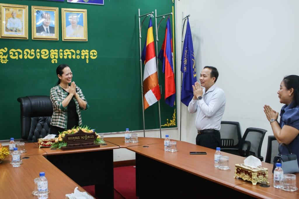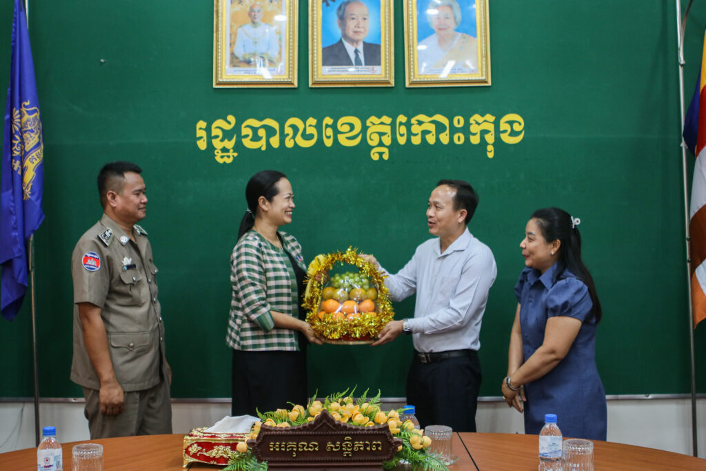 លោកជំទាវ ឈី វ៉ា អភិបាល នៃគណៈអភិបាលខេត្តកោះកុង បានអនុញ្ញាតឱ្យលោក ខៀវ ជីវ័ន ប្រធានការិយាល័យ អប់រំ យុវជន និងកីឡាស្រុកកោះកុង និងគ្រួសារ ជួបសម្ដែងការគួរសម។