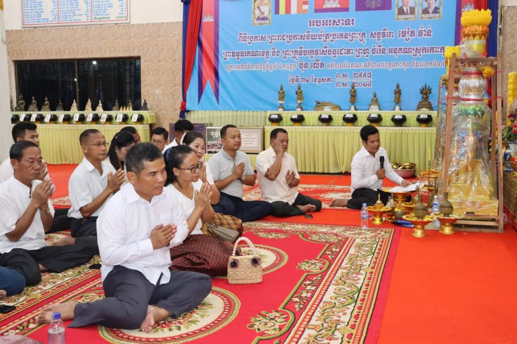 លោកឧត្តមសេនីយ៍ត្រី ជួន សុភ័ក្រ មេបញ្ជាការតំបន់ប្រតិបត្តិការសឹករងកោះកុង និងលោកស្រី បានដឹកនាំសហការីក្រោមឱវាទ ចូលរួម ក្នុងពិធីសូត្រមន្ត នាឱកាសវេនកាន់បិណ្ឌវេនទី១៣ នៅទីអារាមវត្តអម្ពរទិយារ៉ាម ហៅវត្តព្រែកស្វាយ ស្ថិតនៅភូមិព្រែកស្វាយ សង្កាត់ស្ទឹងវែង ក្រុងខេមរភូមិន្ទ ខេត្តកោះកុង ។