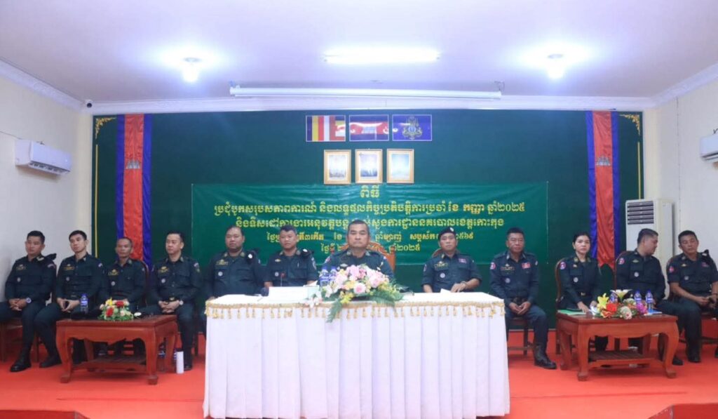 លោកឧត្តមសេនីយ៍ទោ គង់ មនោ ស្នងការនគរបាលខេត្តកោះកុង ដឹកនាំលោក លោកស្រីស្នងការរង លោកអនុប្រធានផែនការងារ លោកនាយ នាយរង ការិយាល័យ លោកមេបញ្ជាការវរព្រំដែនគោកលេខ៨២៧ និងលោកអធិការ អធិការរងទទួលការងារសណ្ដាប់ធ្នាប់ និងទទួលការងារកិច្ចការប៉ុស្តិ៍នគរបាលរដ្ឋបាលទាំង ៧ក្រុង ស្រុក រៀបចំកិច្ចប្រជុំបូកសរុបសភាពការណ៍ និងលទ្ធផលកិច្ចប្រតិបត្តិការប្រចាំខែកញ្ញា ឆ្នាំ២០២៥ និងផ្សព្វផ្សាយទិសដៅការងារអនុវត្តបន្ត របស់ស្នងការដ្ឋាននគរបាលខេត្តកោះកុង។