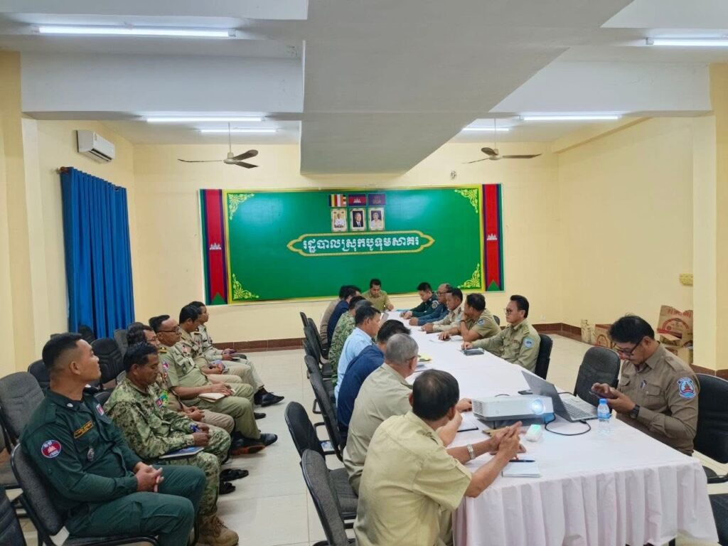 លោក ជា ច័ន្ទកញ្ញា អភិបាល នៃគណៈអភិបាលស្រុកស្រែអំបិល បានដឹកនាំកិច្ចប្រជុំតាមដាន និងត្រួតពិនិត្យការផ្សព្វផ្សាអនុក្រឹត្យលេខ០៣ អនក្រ.បក របស់រាជរដ្ឋាភិបាល ស្តីពីការគ្រប់គ្រងសន្តិសុខសុវត្ថិភាពតាមទីតាំងរស់នៅប្រមូលផ្តុំ