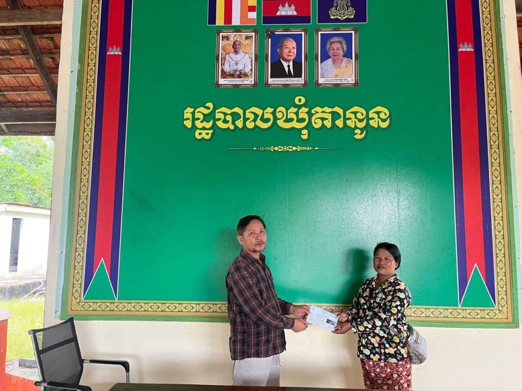 លោក វ៉ន វ៉ាត មេឃុំតានូន បានប្រគល់ប័ណ្ណសមធម៌ជូនគ្រួសារក្រីក្រដែលមានជីវភាពខ្វះខាតចំនួន បីគ្រួសារ