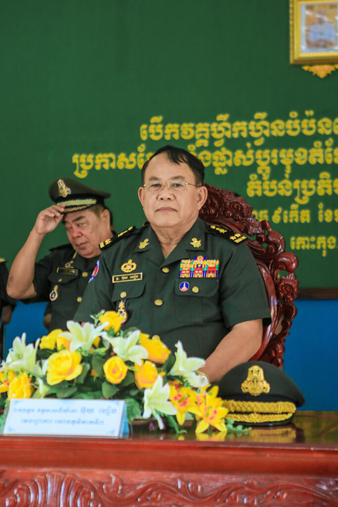 លោកស្រី អ៉ី នារីនេត អភិបាលខេត្តស្តីទី បានអញ្ជើញស្វាគមន៍ ឯកឧត្តម ឧត្តមសេនីយ៍ទោ អ៊ុយ ហៀង មេបញ្ជាការ យោធភូមិភាគទី៣ក្នុងពិធីបើកវគ្គហ្វឹកហ្វឺនបំប៉នពង្រឹងសមត្ថភាពយោធា ប្រចាំឆ្នាំ២០២៥ និងប្រកាសតែងតាំង ផ្លាស់ប្តូរមុខតំណែង បំពាក់ឋានន្តរស័ក្តិយោធិន តំបន់ប្រតិបត្តិការសឹករងកោះកុង។