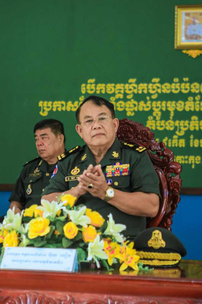 ការងារហ្វឹកហ្វឺន គឺជាជ្រុងអាទិភាពមួយ នៃការកែទម្រង់កងយោធពលខេមរភូមិន្ទ ដែល រាជរដ្ឋាភិបាលកម្ពុជា បានដាក់ចេញនូវផែនការកែទម្រង់កងយោធពលខេមរភូមិន្ទ សំដៅធ្វើ ទំនើបកម្ម និងបង្កើនសមត្ថភាពវិជ្ជាជីវៈកងទ័ព ដើម្បីធានាការពារប្រកបដោយប្រសិទ្ធភាពនូវ ឯករាជ្យ អធិបតេយ្យ បូរណភាពទឹកដី សន្តិភាព សន្តិសុខ សុវត្ថិភាព និងសណ្តាប់ធ្នាប់សាធារណៈ ជូនប្រជាពលរដ្ឋ។ កងយោធពលខេមរភូមិន្ទជាបណ្តើរៗ បានធ្វើការអភិវឌ្ឍធនធានមនុស្ស តាមរយៈ ការបណ្តុះបណ្តាលយោធិនអាជីព និងការបង្កើនគុណភាពហ្វឹកហ្វឺន បំប៉នជំនាញឯកទេស ស្របទៅតាមស្ថានភាពនិងតម្រូវការនៃសំណូមពរភារកិច្ចចំពោះមុខរបស់អង្គភាពនីមួយៗ។ ជាមួយគ្នា នេះដែរ យុទ្ធសាស្ត្របញ្ចកោណដំណាក់កាលទី១ ដែលបានដាក់ចេញដោយរាជរដ្ឋាភិបាល នីតិកាលទី៧ ក្រោមការដឹកនាំរបស់ សម្តេចមហាបវរធិបតី ហ៊ុន ម៉ាណែត នាយករដ្ឋមន្ត្រីនៃ ព្រះរាជាណាចក្រកម្ពុជា បានដាក់ចេញនូវគោលដៅយុទ្ធសាស្ត្រ ចំនួន០៥ រួមមាន៖ កំណើន សេដ្ឋកិច្ចក្នុងរង្វង់៧%ជាប្រចាំឆ្នាំ, បង្កើនការងារ, កាត់បន្ថយភាពក្រីក្រ, ពង្រឹងប្រសិទ្ធភាព ការងារ និងចីរភាពនៃការអភិវឌ្ឍន៍សង្គមជាតិនិងការកសាងភាពធន់។ និងបានកំណត់អាទិភាព គន្លឹះចំនួន០៥ គឺ «មនុស្ស ផ្លូវ ទឹក ភ្លើង និង បច្ចេកវិទ្យា” ត្រង់ចំណុចនេះ ខ្ញុំសូមគូសបញ្ជាក់ថា កត្តាមនុស្ស នៅតែជាចំណុចអាទិភាពទី១ ដែលរាជរដ្ឋាភិបាលនីតិកាលទី៧ បាននិងកំពុងផ្តោត ការយកចិត្តទុកដាក់ ដូច្នេះតាមយៈការបើកវគ្គហ្វឹកហ្វឺនថ្ងៃនេះ គឺបានផ្តល់ឱកាសដល់នាយទាហាន នាយទាហានរង ពលទាហាន ក្នុងការកសាងពង្រឹងសមត្ថភាពរបស់ខ្លួនដើម្បីក្លាយទៅជាមូលធនមនុស្សពិតប្រាកដដើម្បីចូលរួមចំណែកក្នុងការការពារព្រំដែននិងការពារបូរណភាពទឹកដី ព្រមទាំងអភិវឌ្ឍប្រទេសជាតិ ឱ្យកាន់តែមានភាពរឹងមាំ និងរីកចម្រើនបន្ថែមទៀត។ ជាមួយគ្នានេះ នាងខ្ញុំ សូមចូលរួមអបអរសាទរចំពោះ នាយទាហាន នាយទាហានរង របស់ យើងដែលត្រូវបានថ្នាក់ដឹកនាំតំឡើងឋានន្តរស័ក្តិ និងផ្តល់សេចក្តីទុកចិត្តតែងតាំងមុខតំណែងថ្មី ចំណុះឱ្យតំបន់ប្រតិបត្តិការសឹករងកោះកុង។