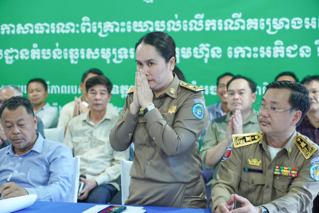 លោកស្រី អ៉ី នារីនេត អភិបាលខេត្តស្តីទី បានអញ្ជើញស្វាគមន៍ឯកឧត្តម តឹករ៉េត សំរេច រដ្ឋលេខាធិការប្រចាំការក្រសួងរៀបចំដែនដី នគរូបនីយកម្ម និងសំណង់ ក្នុងកម្មវិធីវេទិកាសាធារណៈពិគ្រោះយោបល់លើករណីគម្រោងអភិវឌ្ឍ រមណីយដ្ឋានតំបន់ឆ្នេរសមុទ្ររបស់ក្រុមហ៊ុន កោះអភិជន រីសត ឯ.ក
