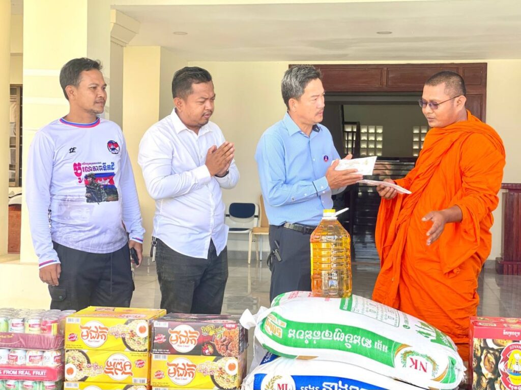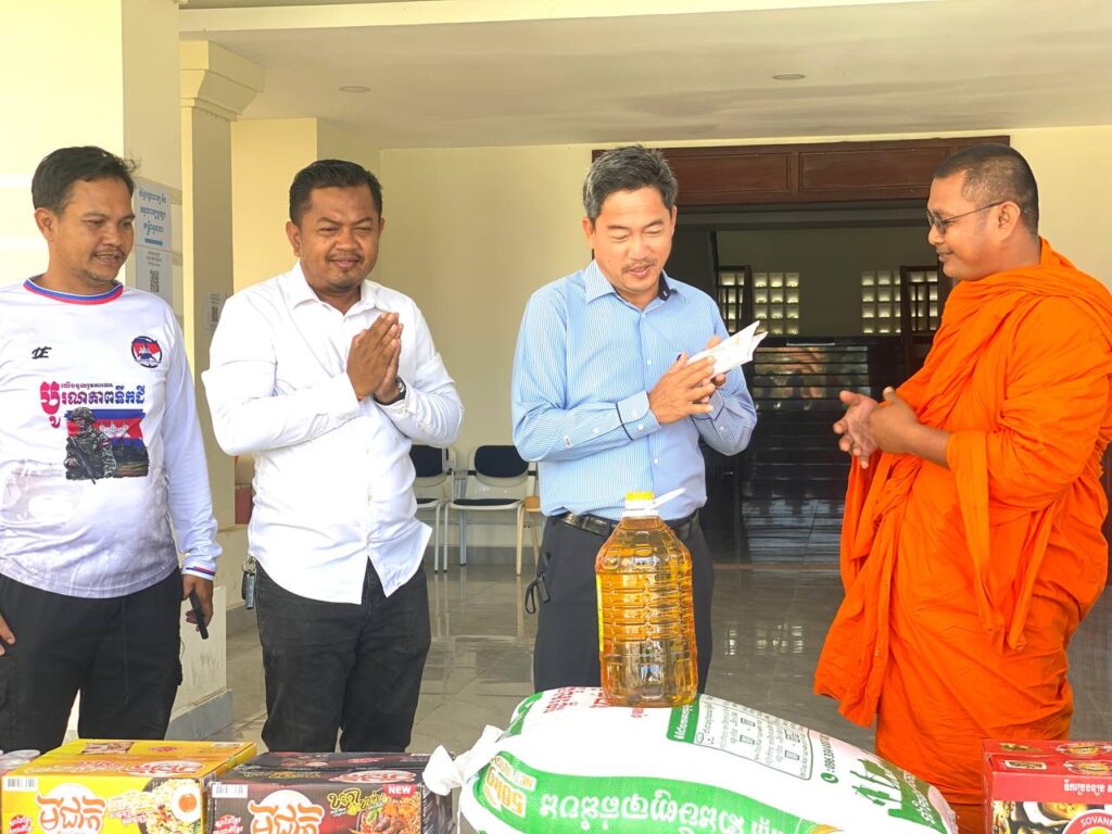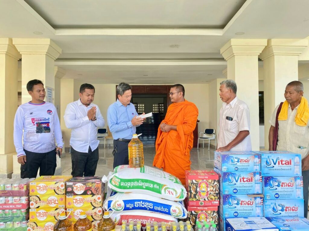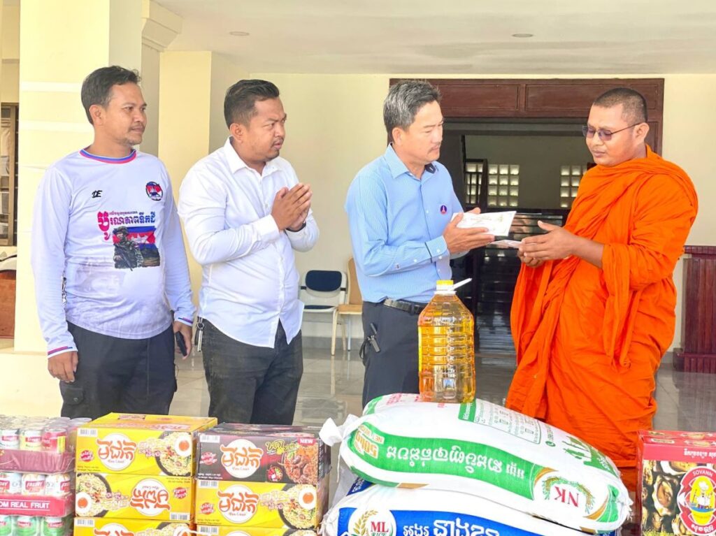 លោក ហាក់ ឡេង អភិបាលស្តីទីខេត្តកោះកុង បានក្រាបបង្គំ និងទទួលអំណោយ ជាគ្រឿង ឧបភោគ បរិភោគ និងបច្ច័យចំនួន ១ ០០០ ០០០រៀល(មួយលាន រៀលគត់) ពីព្រះតេជគុណ ឥន រក្សា ព្រះគ្រូចៅអធិការវត្តគិរីតេជោ ហៅវត្តកូនកុក និងលោកអាចារ្យ ដែលបានឧបត្ថម្ភ ជូនដល់កងកម្លាំងជួរមុខ ដែលកំពុងឈរជើង នៅក្នុងភូមិសាស្ត្រខេត្តកោះកុង និងជនភៀសសឹក