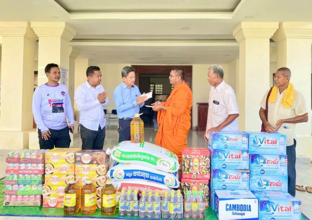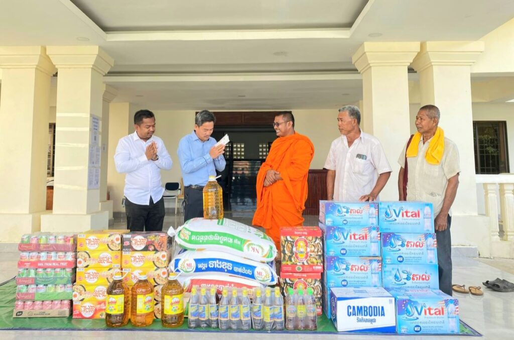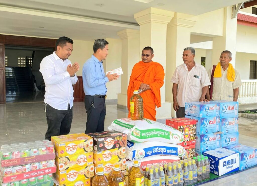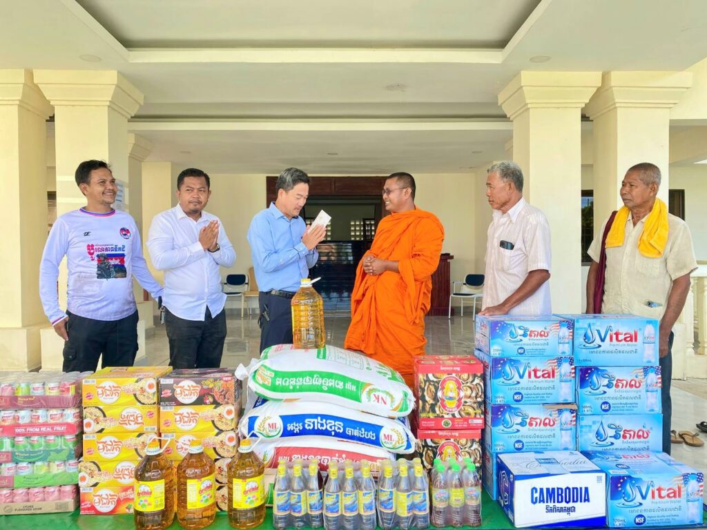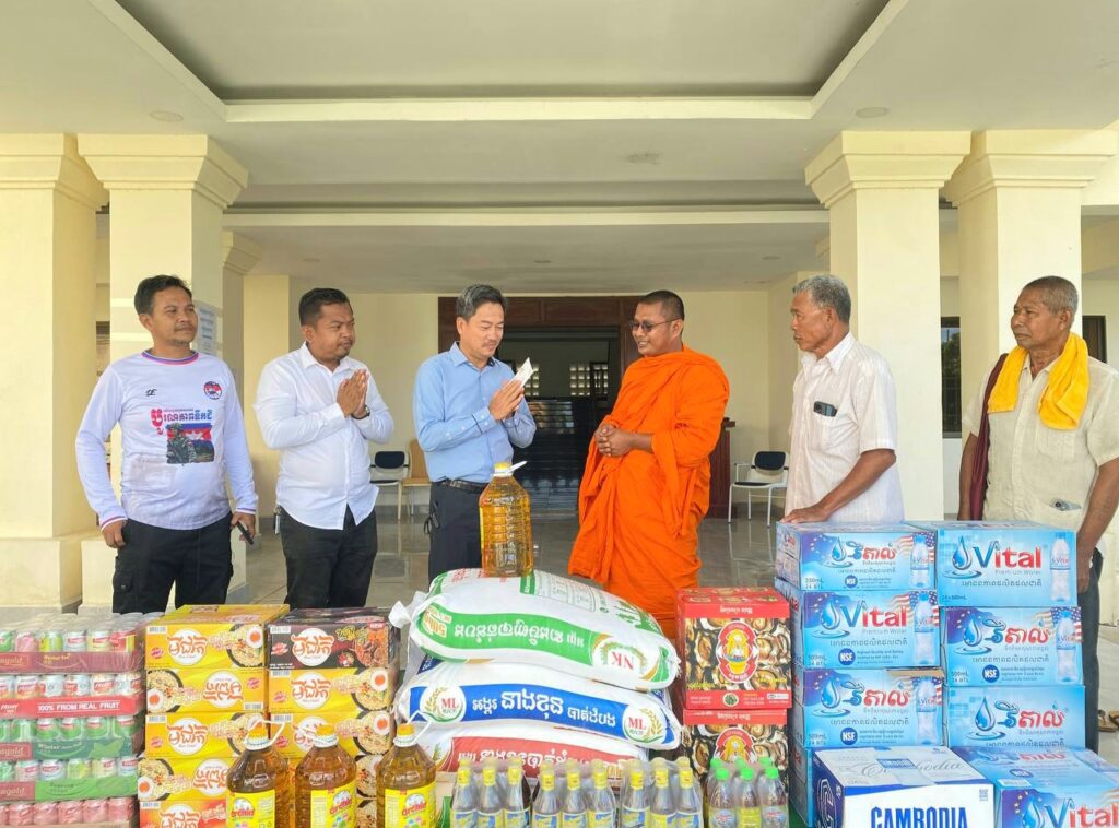លោក ហាក់ ឡេង អភិបាលស្តីទីខេត្តកោះកុង បានក្រាបបង្គំ និងទទួលអំណោយ ជាគ្រឿង ឧបភោគ បរិភោគ និងបច្ច័យចំនួន ១ ០០០ ០០០រៀល(មួយលាន រៀលគត់) ពីព្រះតេជគុណ ឥន រក្សា ព្រះគ្រូចៅអធិការវត្តគិរីតេជោ ហៅវត្តកូនកុក និងលោកអាចារ្យ ដែលបានឧបត្ថម្ភ ជូនដល់កងកម្លាំងជួរមុខ ដែលកំពុងឈរជើង នៅក្នុងភូមិសាស្ត្រខេត្តកោះកុង និងជនភៀសសឹក