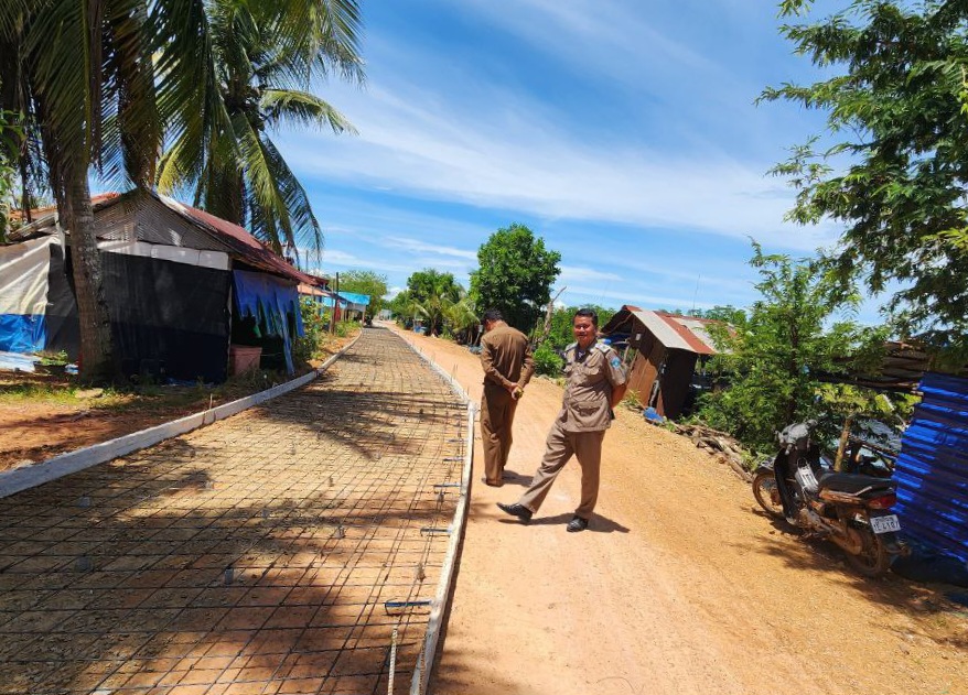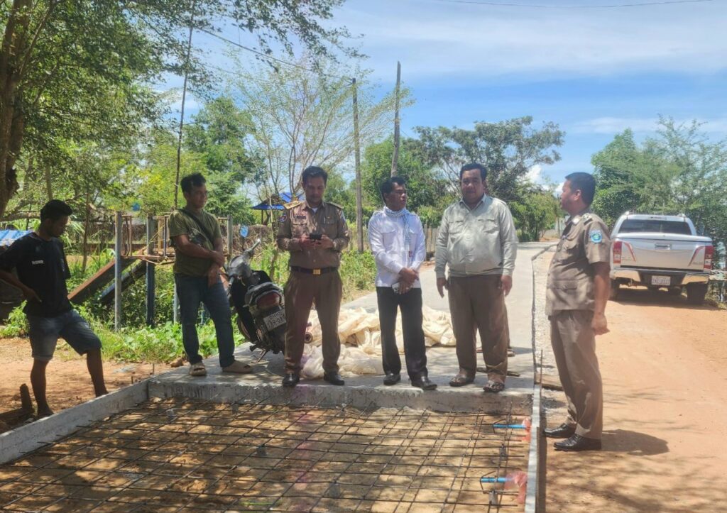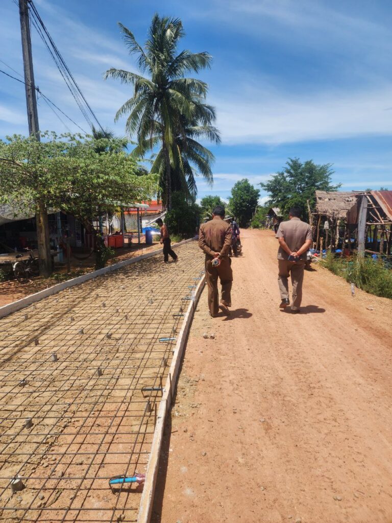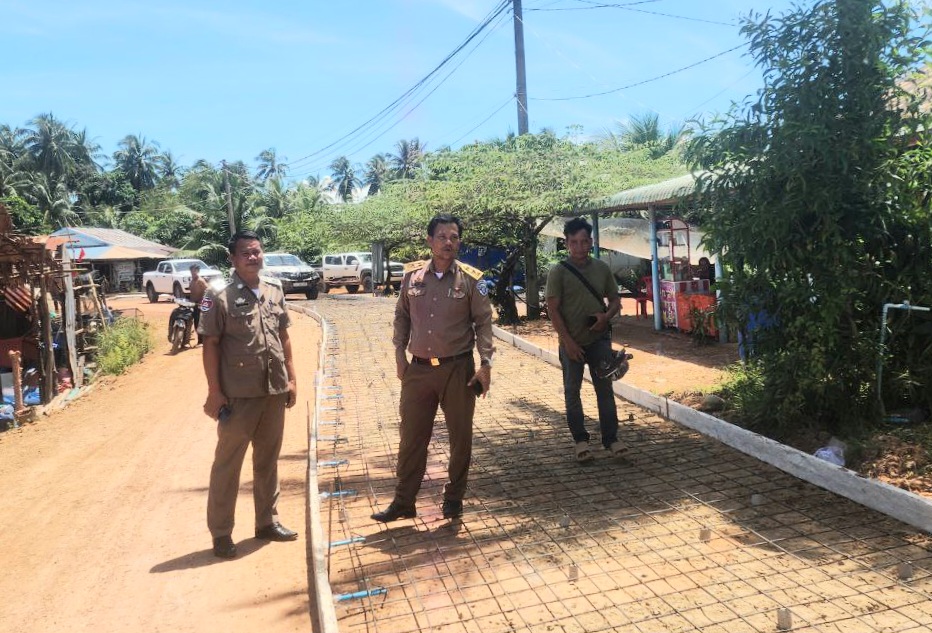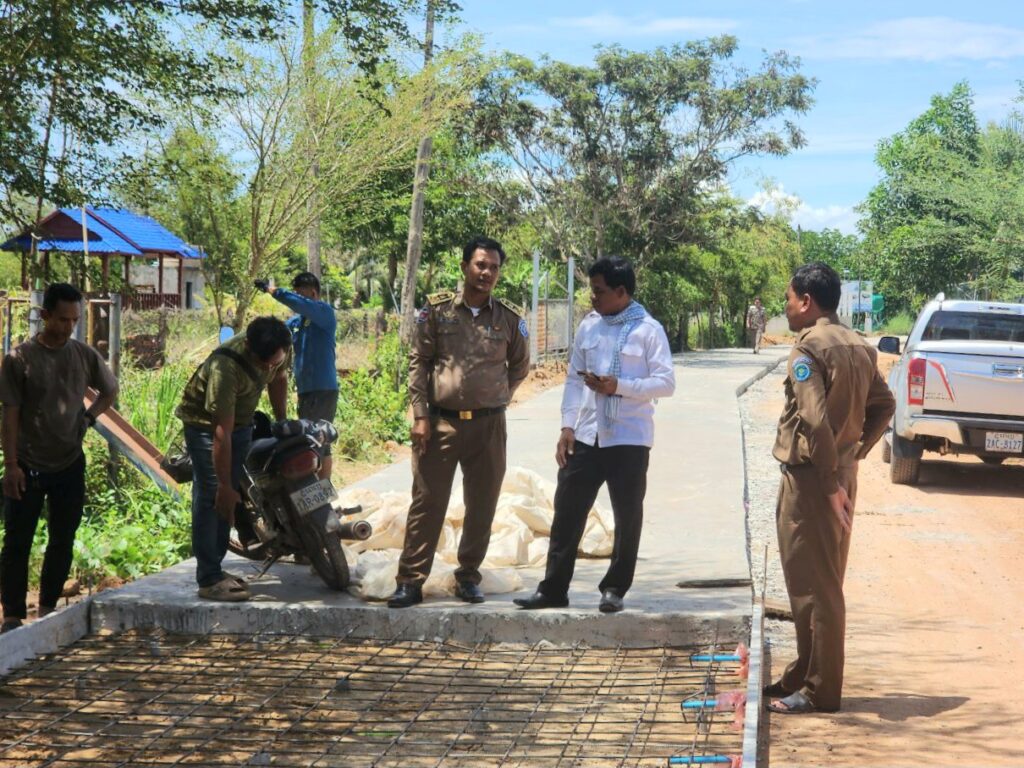 ក្រុមការងារខេត្តកោះកុង បានចុះពិនិត្យការដ្ឋានសាងសង់ផ្លូវបេតុងអាមេ ប្រវែង ៩៣៤ម៉ែត្រ ទទឹង ៦ម៉ែត្រ កម្រាស់ ១៥០មីលីម៉ែត្រ ស្ថិតនៅក្នុងភូមិជ្រោយស្វាយខាងលិច ឃុំជ្រោយស្វាយ ស្រុកស្រែអំបិល ខេត្តកោះកុង