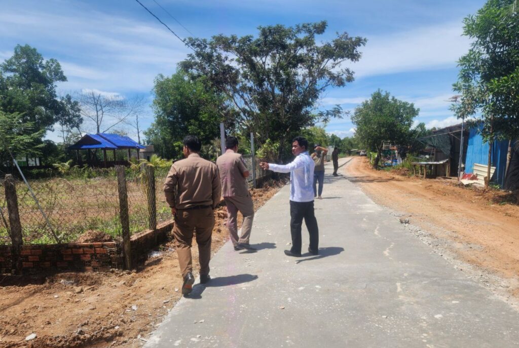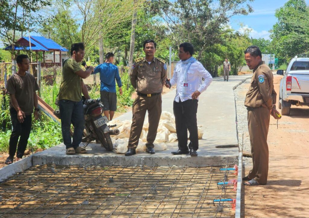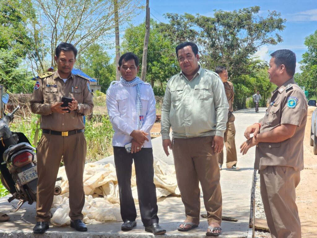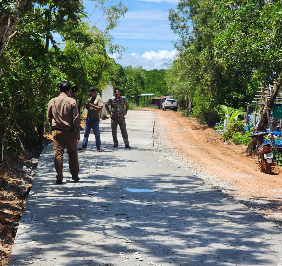 ក្រុមការងារខេត្តកោះកុង បានចុះពិនិត្យការដ្ឋានសាងសង់ផ្លូវបេតុងអាមេ ប្រវែង ៩៣៤ម៉ែត្រ ទទឹង ៦ម៉ែត្រ កម្រាស់ ១៥០មីលីម៉ែត្រ ស្ថិតនៅក្នុងភូមិជ្រោយស្វាយខាងលិច ឃុំជ្រោយស្វាយ ស្រុកស្រែអំបិល ខេត្តកោះកុង
