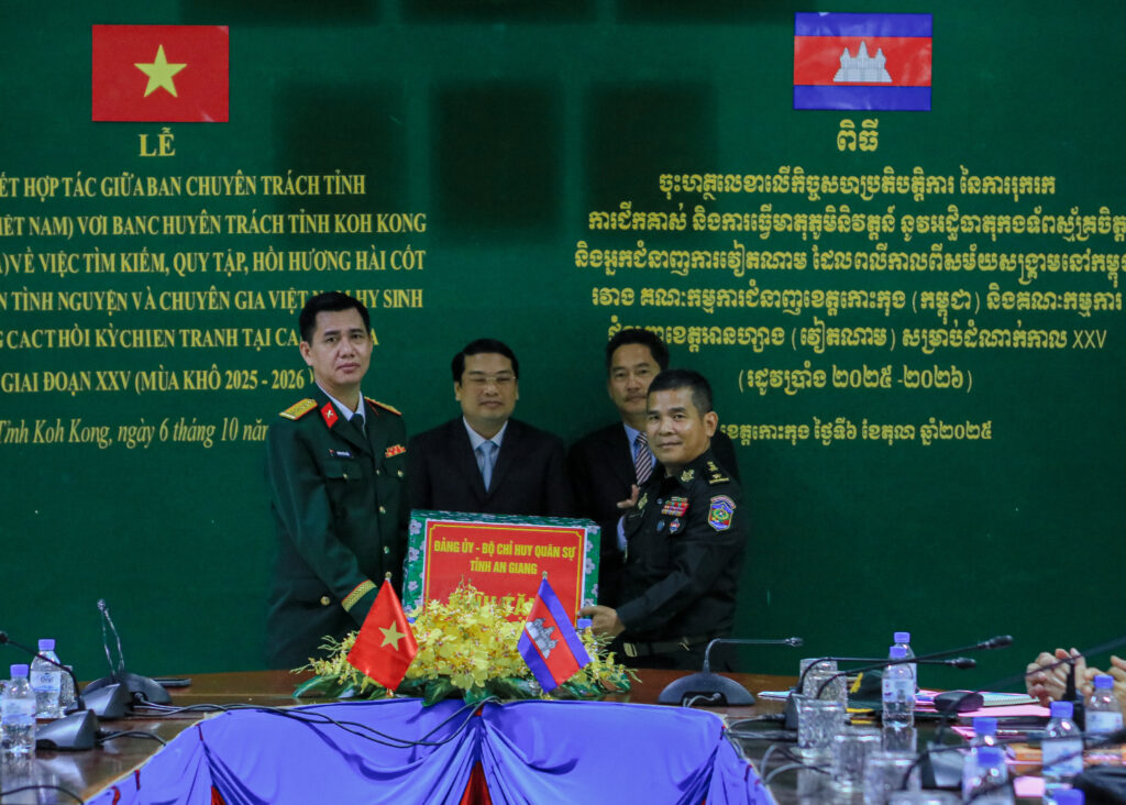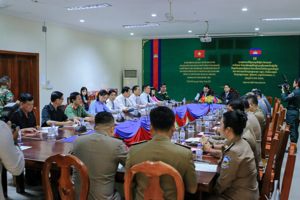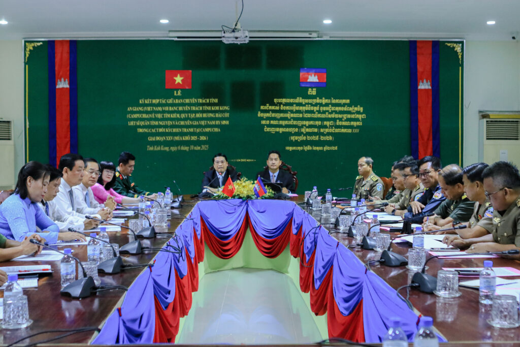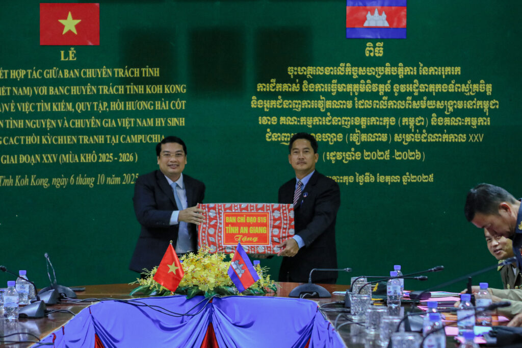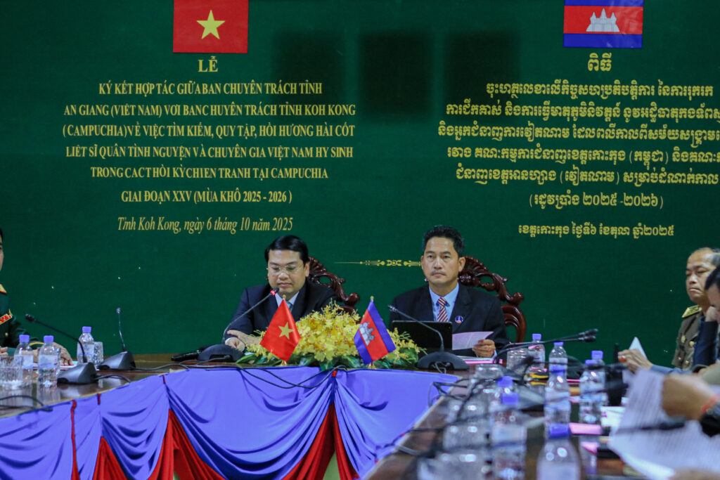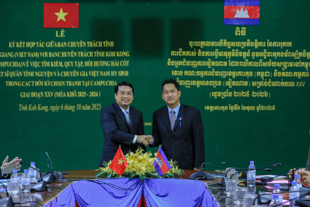 លោក ហាក់ ឡេង អភិបាលស្តីទីខេត្តកោះកុង បានអញ្ជើញ ចុះហត្ថលេខាលើកំណត់ហេតុកិច្ចសហប្រតិបត្តិការ នៃការរុករក ការជីកគាស់ និងការធ្វើមាតុភូមិនិវត្តន៍នូវអដ្ឋិធាតុកងទ័ពស្ម័គ្រចិត្ត និងអ្នកជំនាញការវៀតណាម ដែលបានពលីកាលពីសម័យសង្រ្គាមនៅកម្ពុជា ក្នុងភូមិសាស្រ្តខេត្តកោះកុង រវាងគណៈកម្មការជំនាញខេត្តកោះកុង និងគណៈកម្មការជំនាញខេត្តអានហ្សាង នៃសាធារណរដ្ឋសង្គមនិយមវៀតណាម