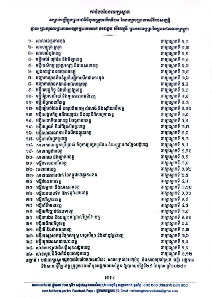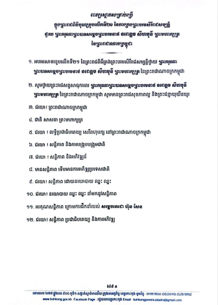 សេចក្តីណែនាំ ស្តីពីការរៀបចំព្រះរាជពិធីបុណ្យខួបលើកទី២១ នៃការគ្រងព្រះបរមសិរីរាជសម្បត្តិ ថ្វាយ ព្រះករុណាព្រះបាទសម្តេចព្រះបរមនាថ នរោត្តម សីហមុនី ព្រះមហាក្សត្រ នៃព្រះរាជាណាចក្រកម្ពុជា