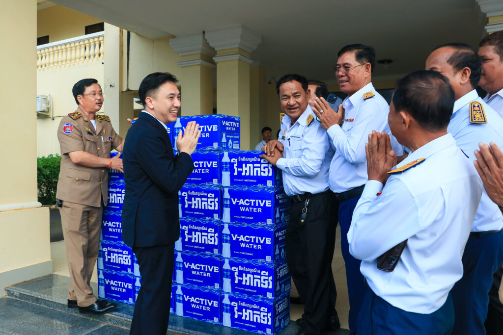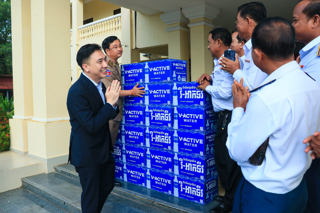 លោក អន សុធារិទ្ធ អភិបាលរង នៃគណៈអភិបាលខេត្តកោះកុង និងអ្នកឧកញ៉ា សំអាង វឌ្ឍនៈ អគ្គនាយកក្រុមហ៊ុន VATTANAC BREWERY LIMITED ប្រគល់រង្វាន់ ជូនសិស្សានុសិស្សប្រឡងសញ្ញាបត្រមធ្យមសិក្សាទុតិយភូមិ ដែលទទួលបាននិទ្ទេស A និងនិទ្ទេស B និងនាយកសាលា នៅខេត្តកោះកុង