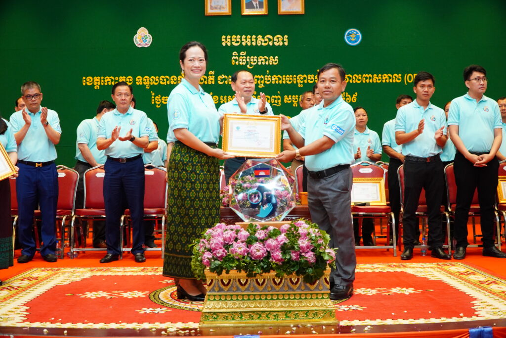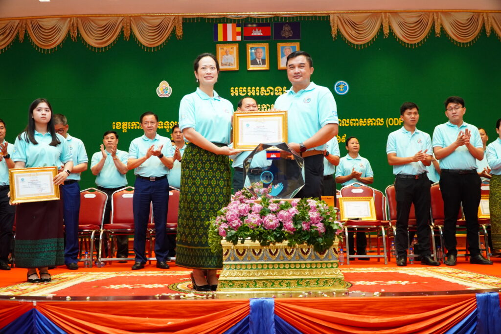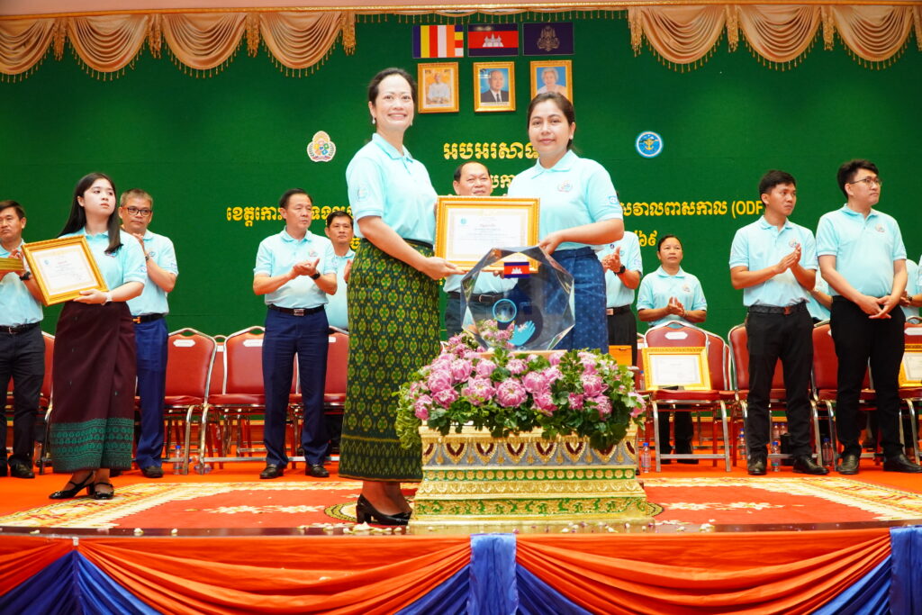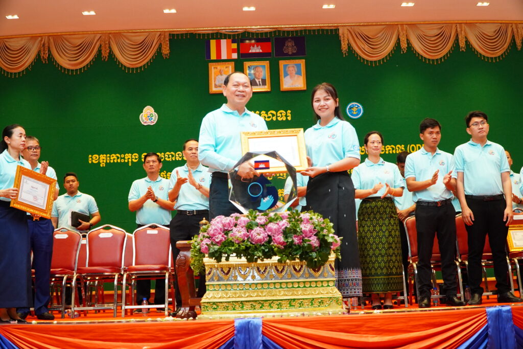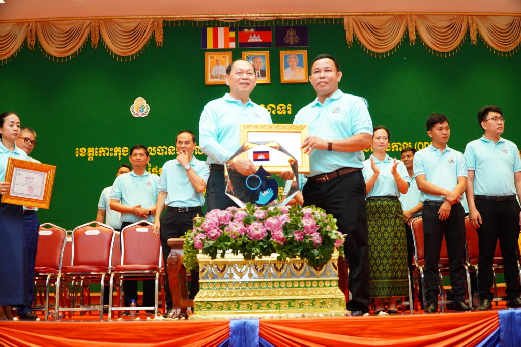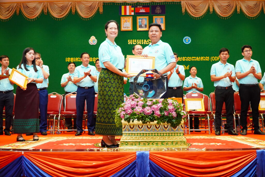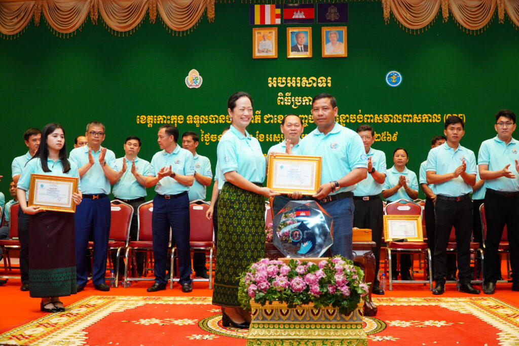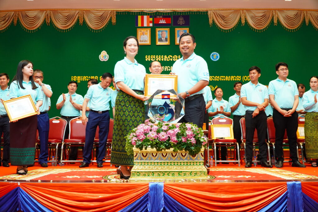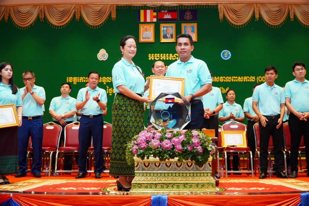 លោកជំទាវ ឈី វ៉ា អភិបាល នៃគណៈអភិបាលខេត្តកោះកុង បានអញ្ជើញស្វាគមន៍ ឯកឧត្តម ឆាយ ឫទ្ធិសែន រដ្ឋមន្ត្រី ក្រសួងអភិវឌ្ឍន៍ជនបទ ក្នុងពិធីអបអរសាទរខេត្តកោះកុង ទទួលបានជ័យលាភីជាខេត្តទី២៥ បានបញ្ចប់ការបន្ទោបង់ពាសវាលពាសកាល(ODF)។