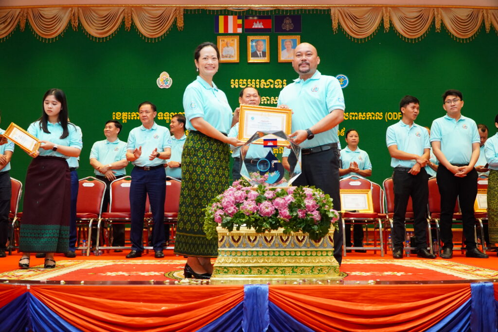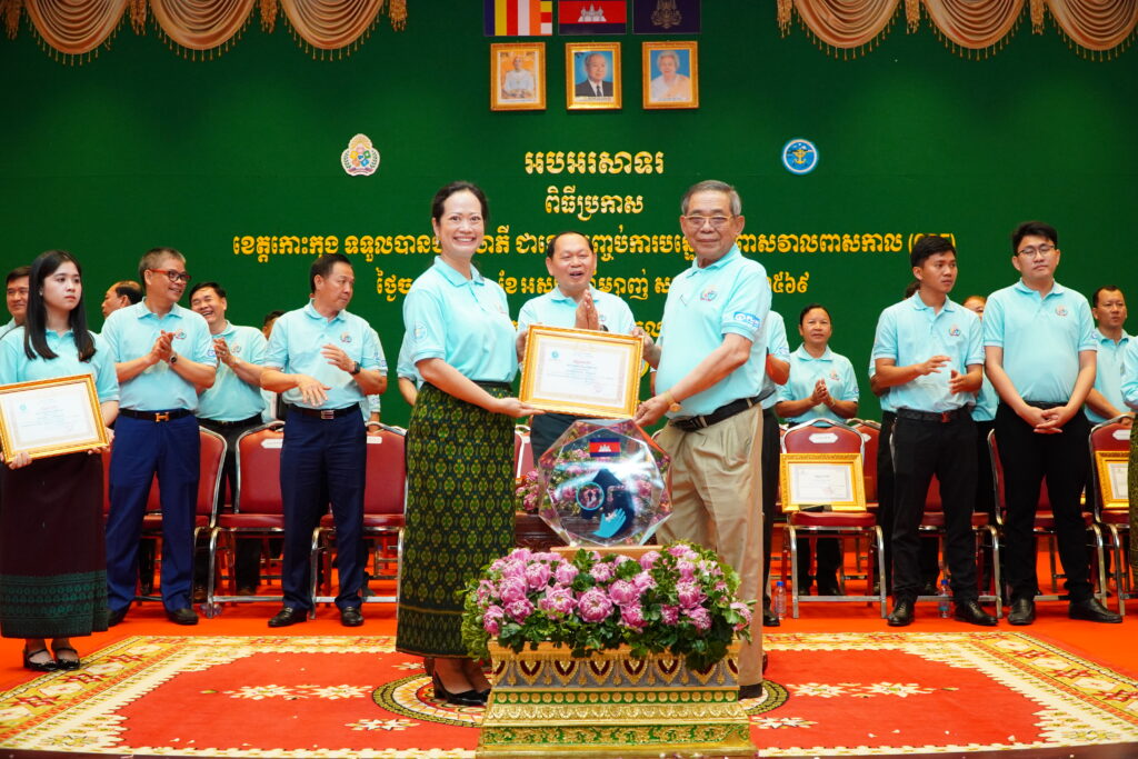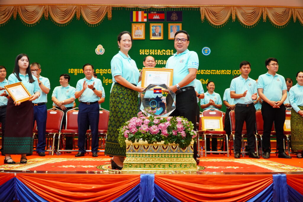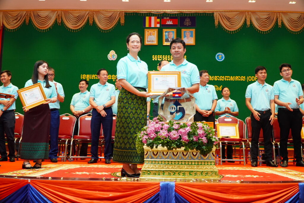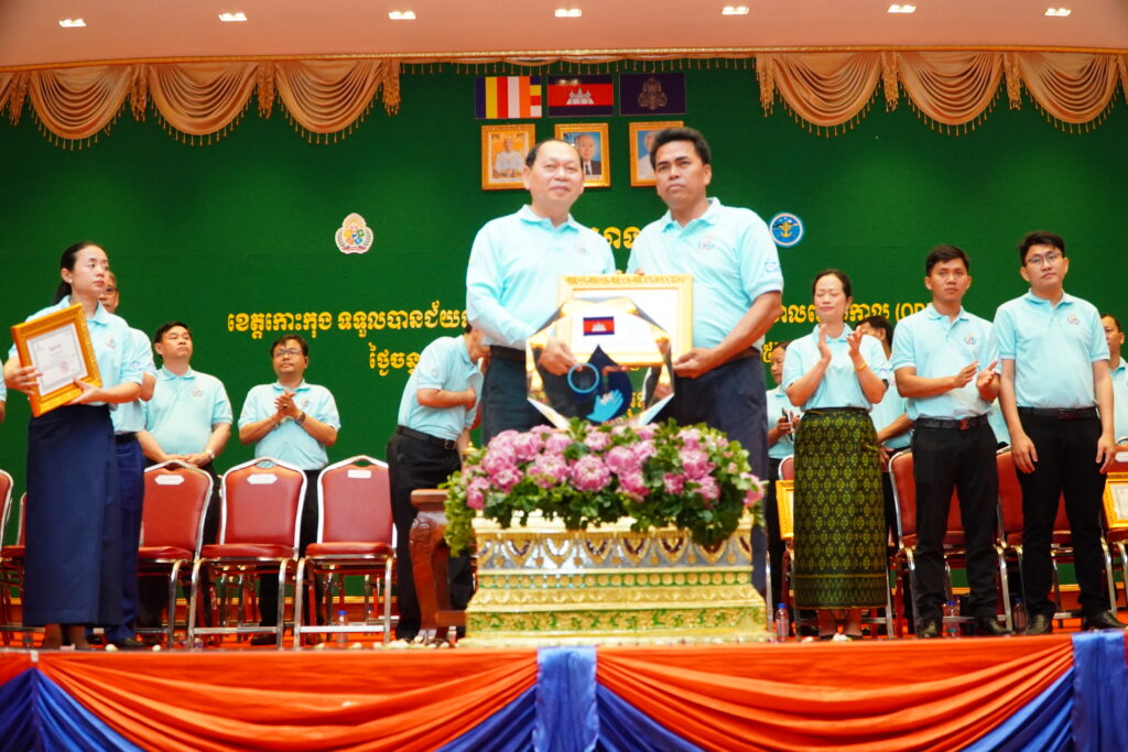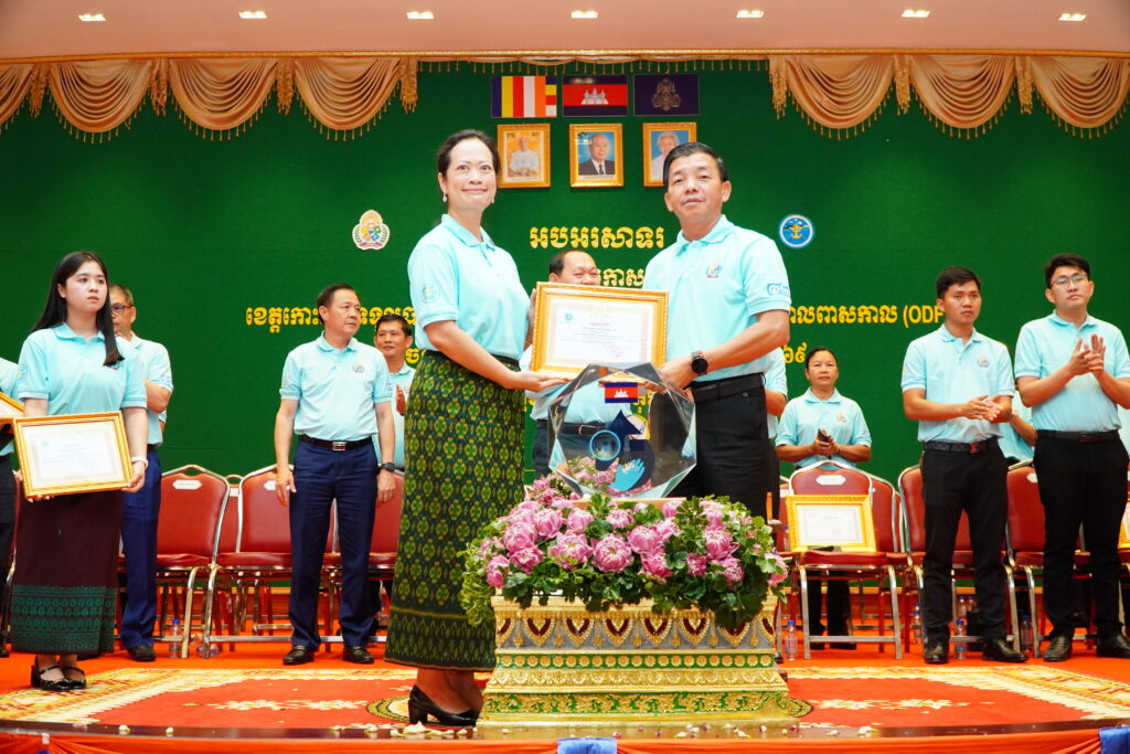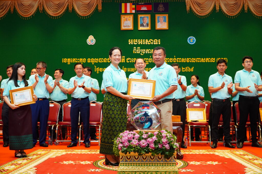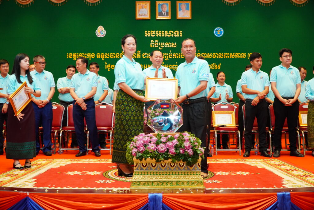 លោកជំទាវ ឈី វ៉ា អភិបាល នៃគណៈអភិបាលខេត្តកោះកុង បានអញ្ជើញស្វាគមន៍ ឯកឧត្តម ឆាយ ឫទ្ធិសែន រដ្ឋមន្ត្រី ក្រសួងអភិវឌ្ឍន៍ជនបទ ក្នុងពិធីអបអរសាទរខេត្តកោះកុង ទទួលបានជ័យលាភីជាខេត្តទី២៥ បានបញ្ចប់ការបន្ទោបង់ពាសវាលពាសកាល(ODF)។