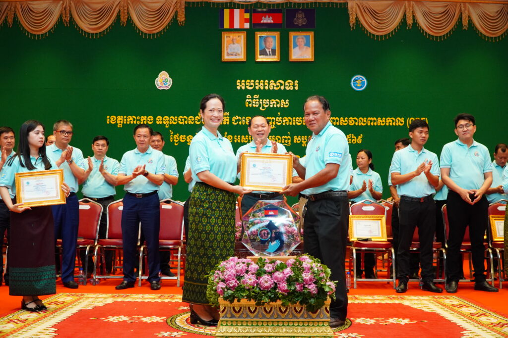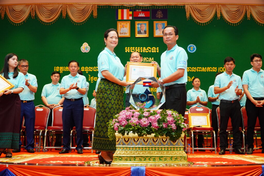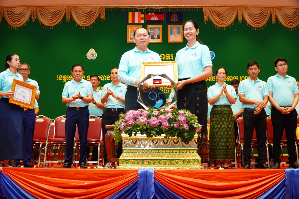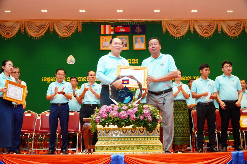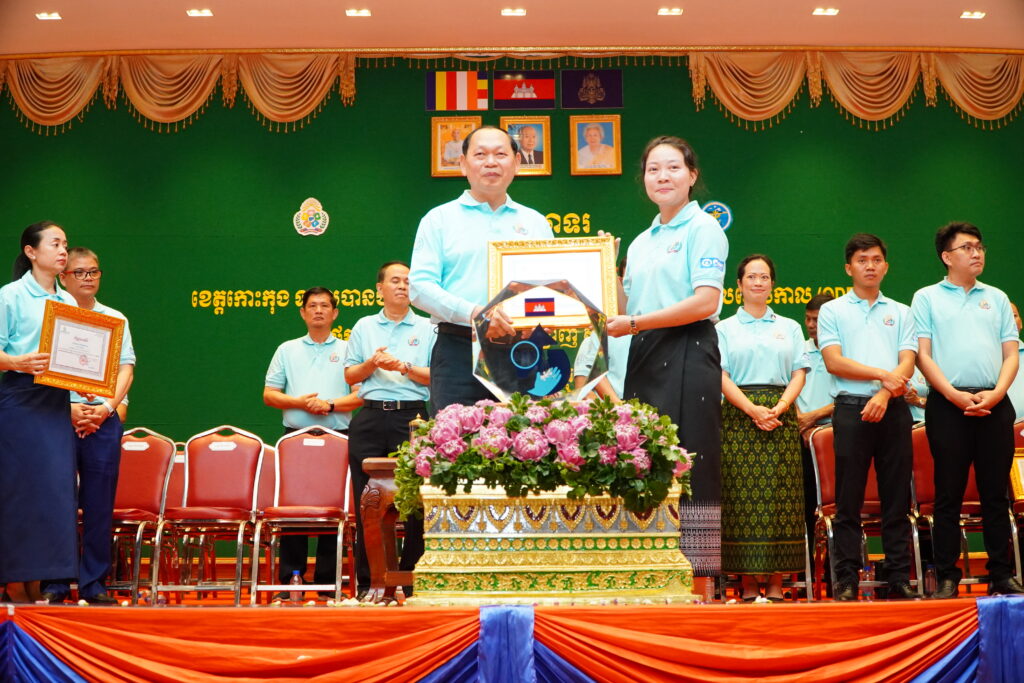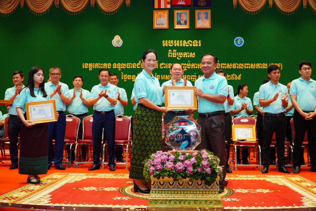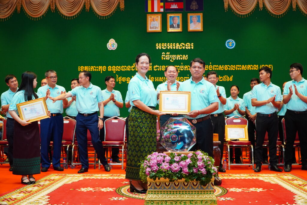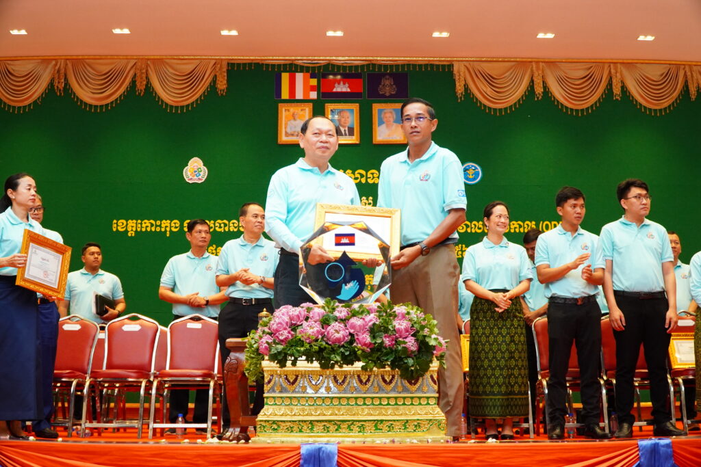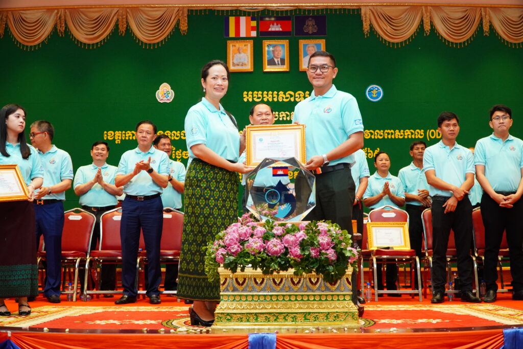 លោកជំទាវ ឈី វ៉ា អភិបាល នៃគណៈអភិបាលខេត្តកោះកុង បានអញ្ជើញស្វាគមន៍ ឯកឧត្តម ឆាយ ឫទ្ធិសែន រដ្ឋមន្ត្រី ក្រសួងអភិវឌ្ឍន៍ជនបទ ក្នុងពិធីអបអរសាទរខេត្តកោះកុង ទទួលបានជ័យលាភីជាខេត្តទី២៥ បានបញ្ចប់ការបន្ទោបង់ពាសវាលពាសកាល(ODF)។