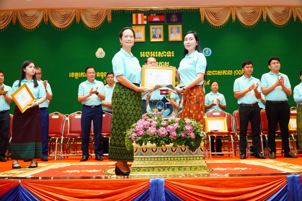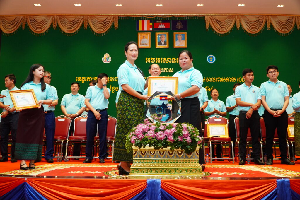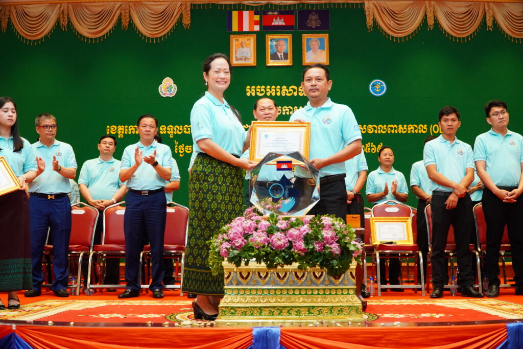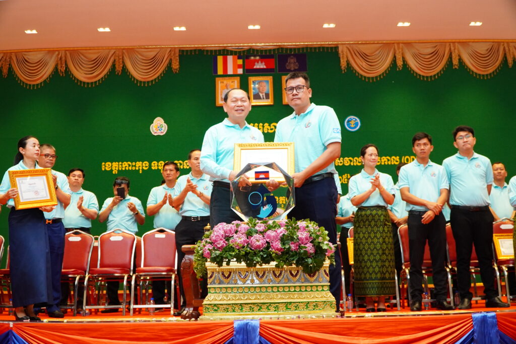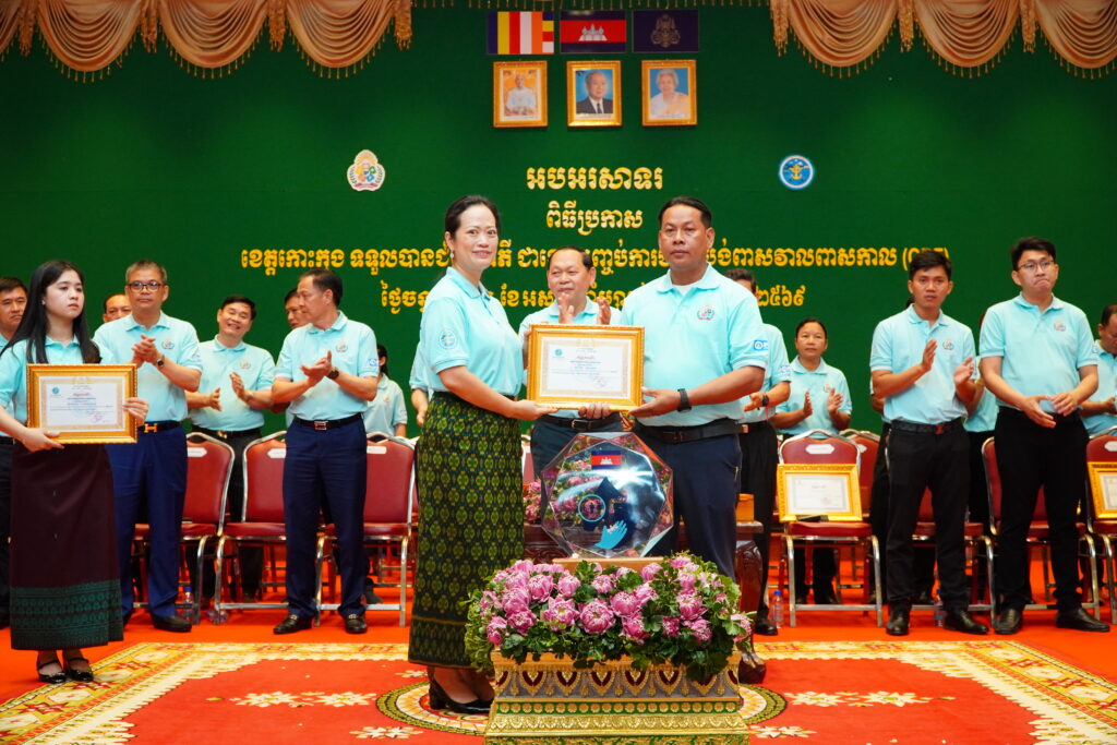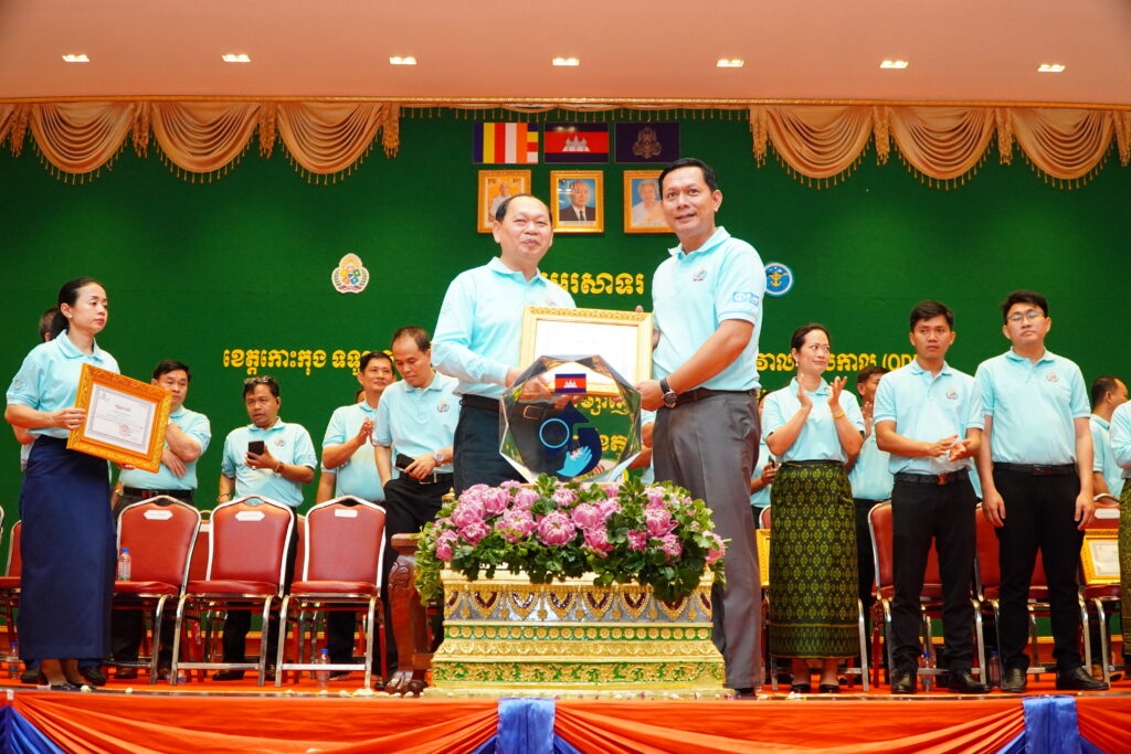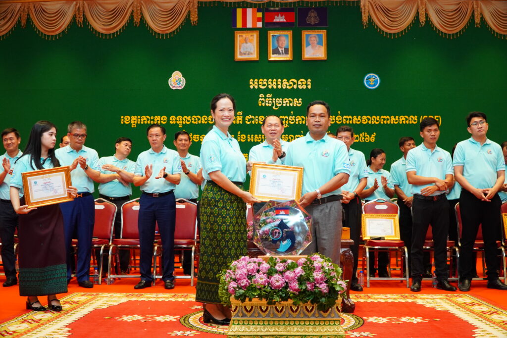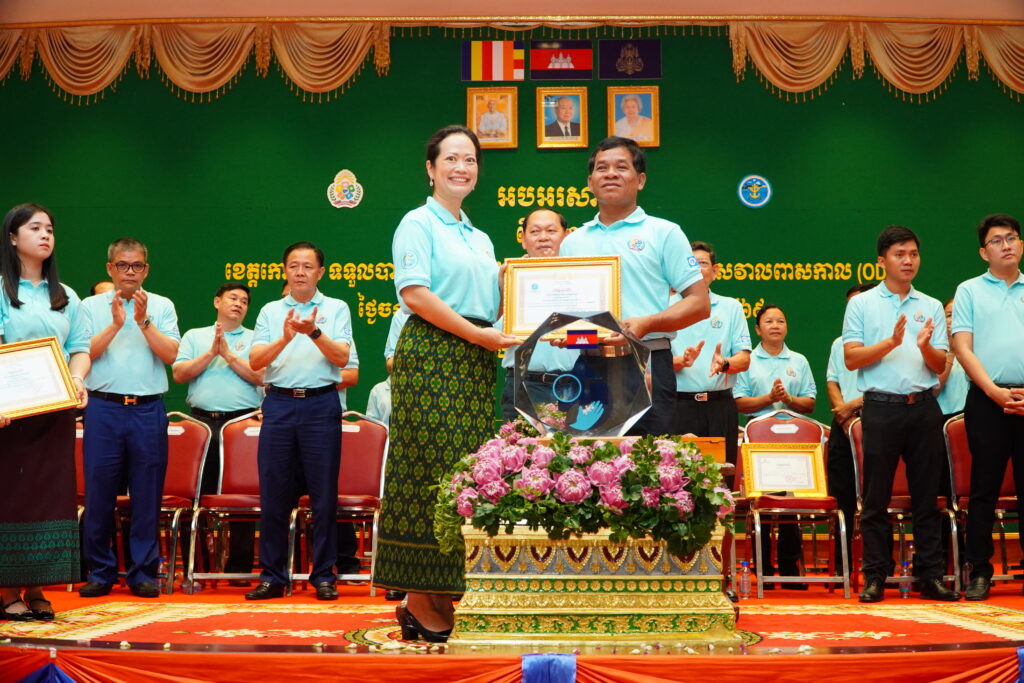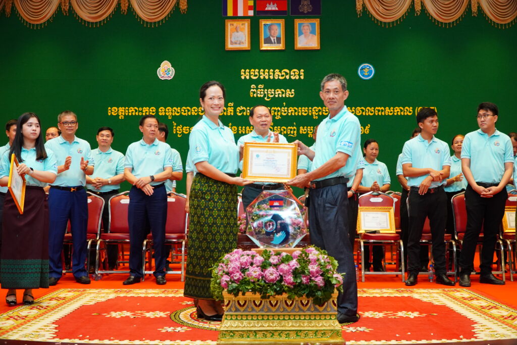 លោកជំទាវ ឈី វ៉ា អភិបាល នៃគណៈអភិបាលខេត្តកោះកុង បានអញ្ជើញស្វាគមន៍ ឯកឧត្តម ឆាយ ឫទ្ធិសែន រដ្ឋមន្ត្រី ក្រសួងអភិវឌ្ឍន៍ជនបទ ក្នុងពិធីអបអរសាទរខេត្តកោះកុង ទទួលបានជ័យលាភីជាខេត្តទី២៥ បានបញ្ចប់ការបន្ទោបង់ពាសវាលពាសកាល(ODF)។