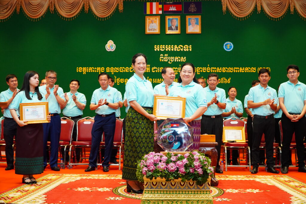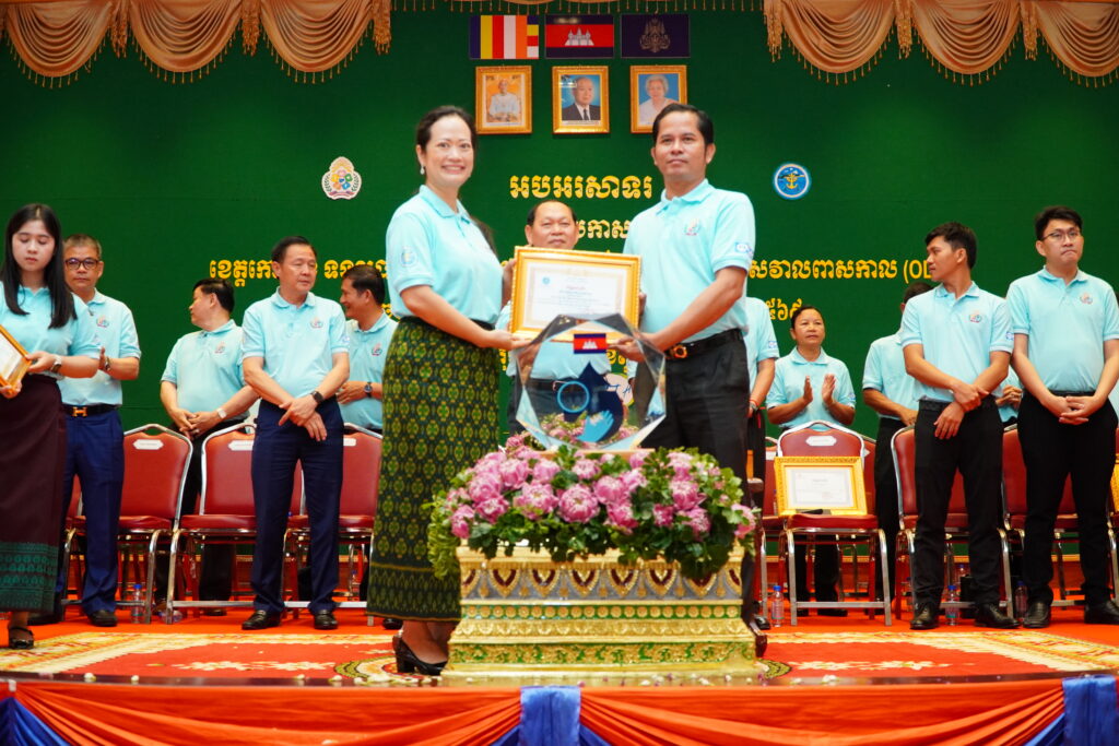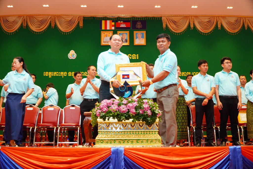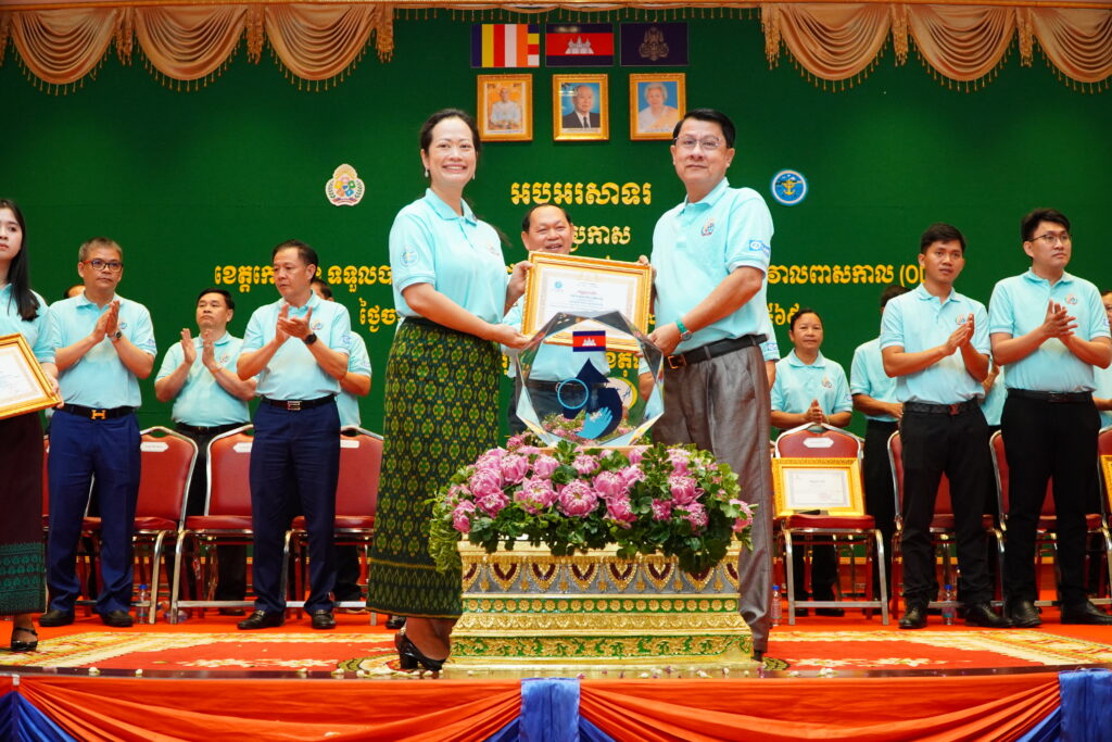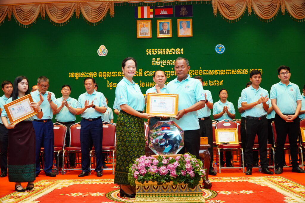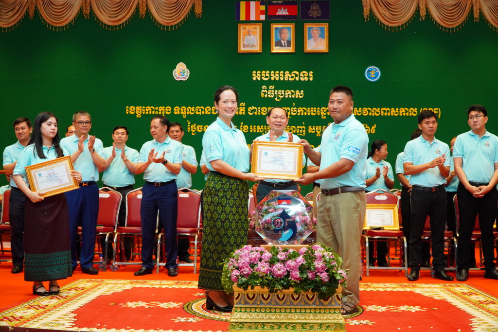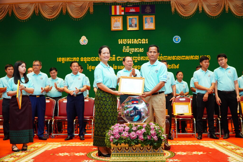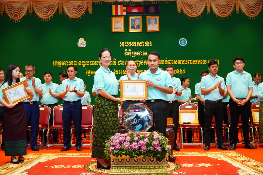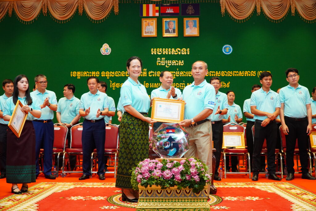 លោកជំទាវ ឈី វ៉ា អភិបាល នៃគណៈអភិបាលខេត្តកោះកុង បានអញ្ជើញស្វាគមន៍ ឯកឧត្តម ឆាយ ឫទ្ធិសែន រដ្ឋមន្ត្រី ក្រសួងអភិវឌ្ឍន៍ជនបទ ក្នុងពិធីអបអរសាទរខេត្តកោះកុង ទទួលបានជ័យលាភីជាខេត្តទី២៥ បានបញ្ចប់ការបន្ទោបង់ពាសវាលពាសកាល(ODF)។