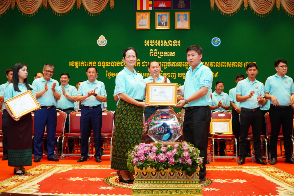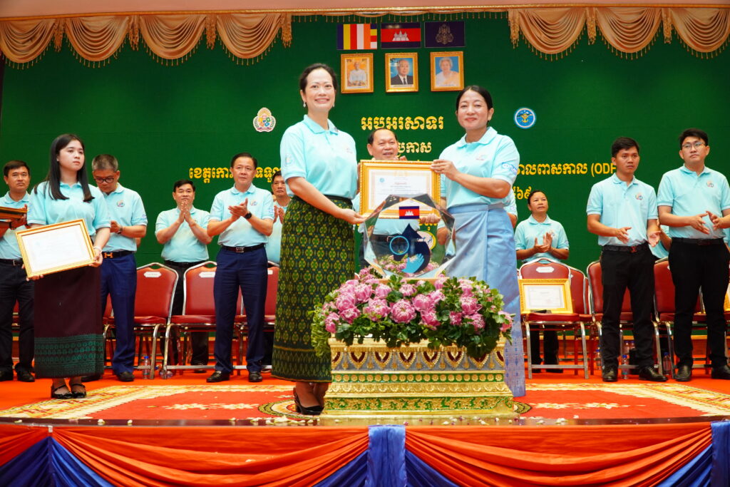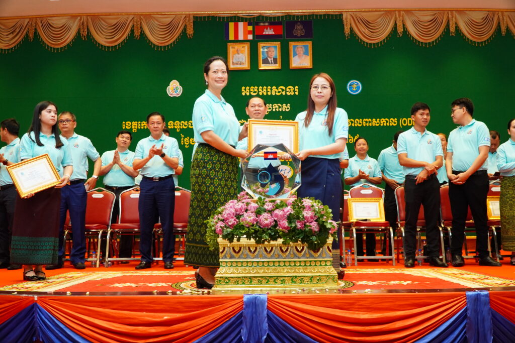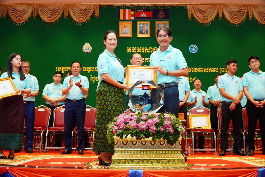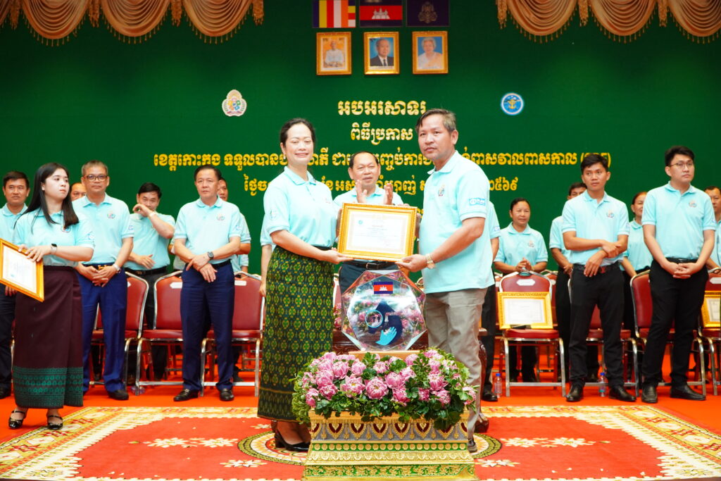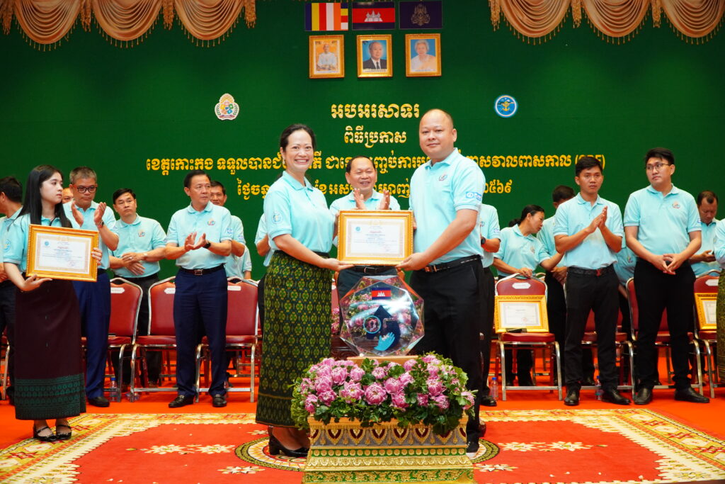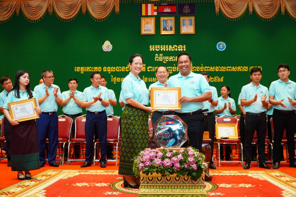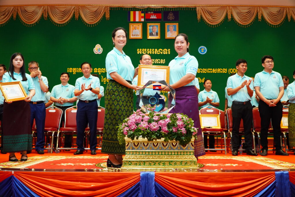 លោកជំទាវ ឈី វ៉ា អភិបាល នៃគណៈអភិបាលខេត្តកោះកុង បានអញ្ជើញស្វាគមន៍ ឯកឧត្តម ឆាយ ឫទ្ធិសែន រដ្ឋមន្ត្រី ក្រសួងអភិវឌ្ឍន៍ជនបទ ក្នុងពិធីអបអរសាទរខេត្តកោះកុង ទទួលបានជ័យលាភីជាខេត្តទី២៥ បានបញ្ចប់ការបន្ទោបង់ពាសវាលពាសកាល(ODF)។