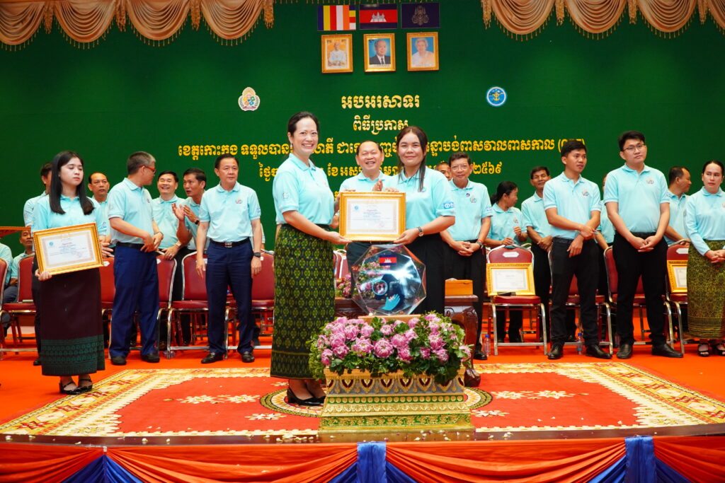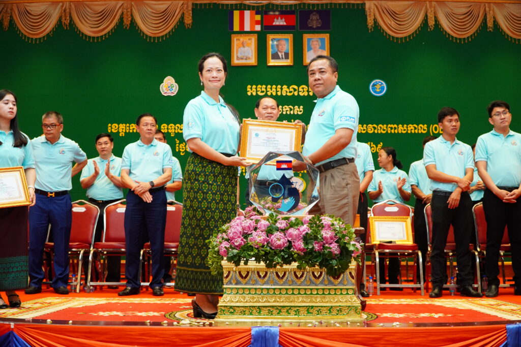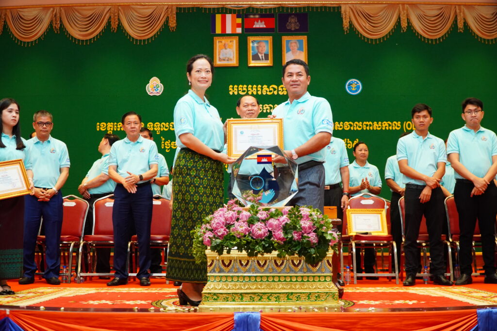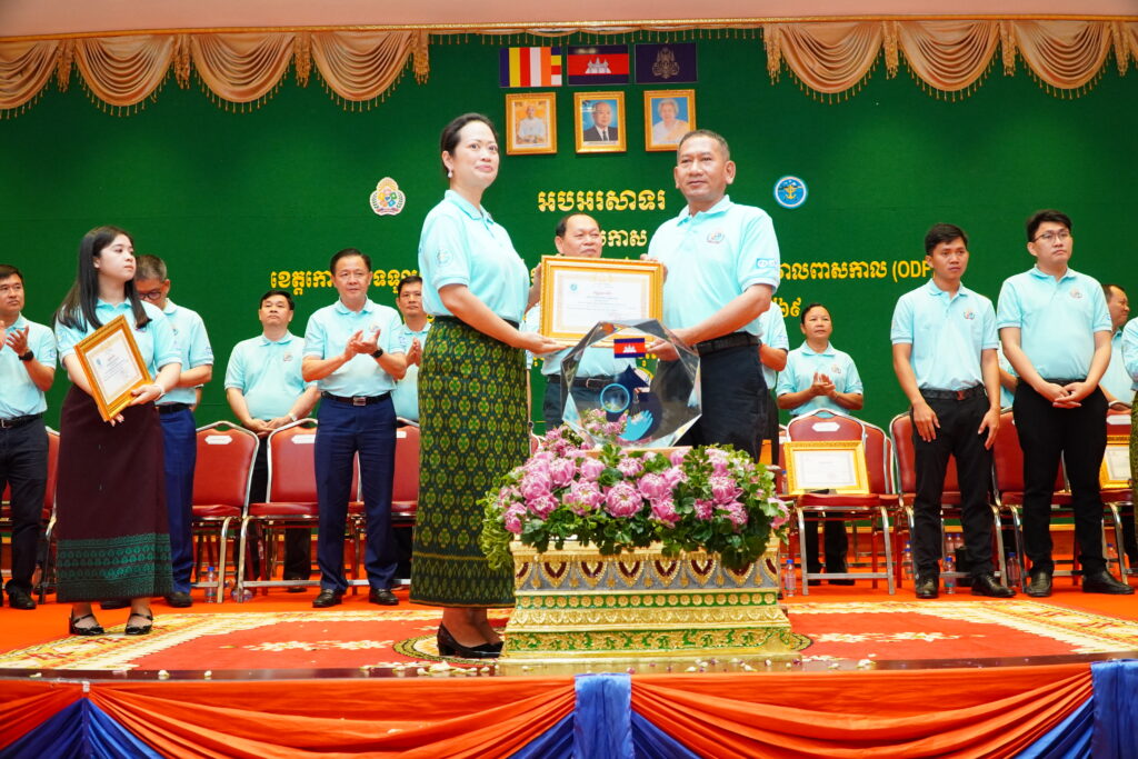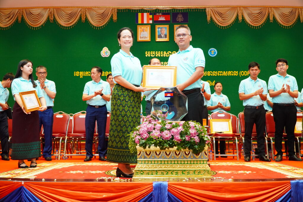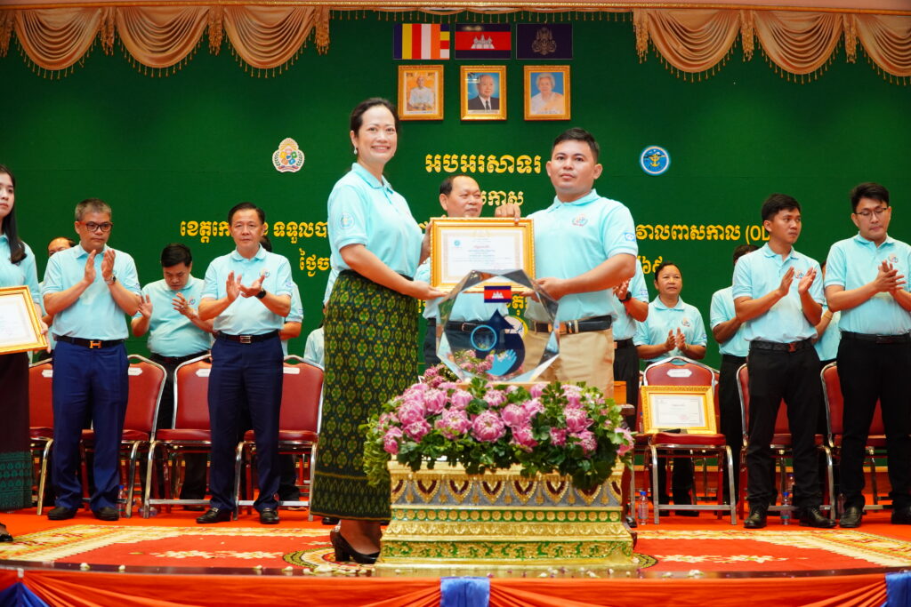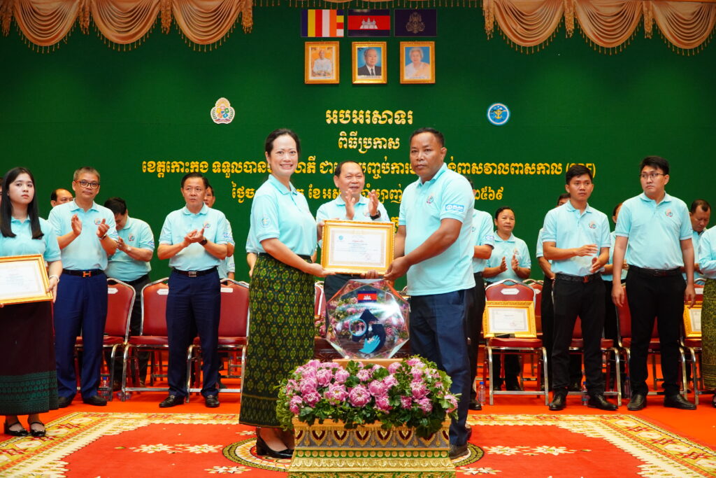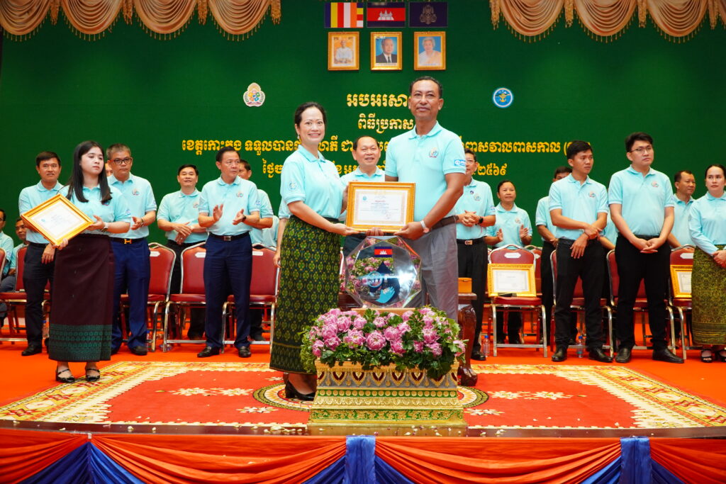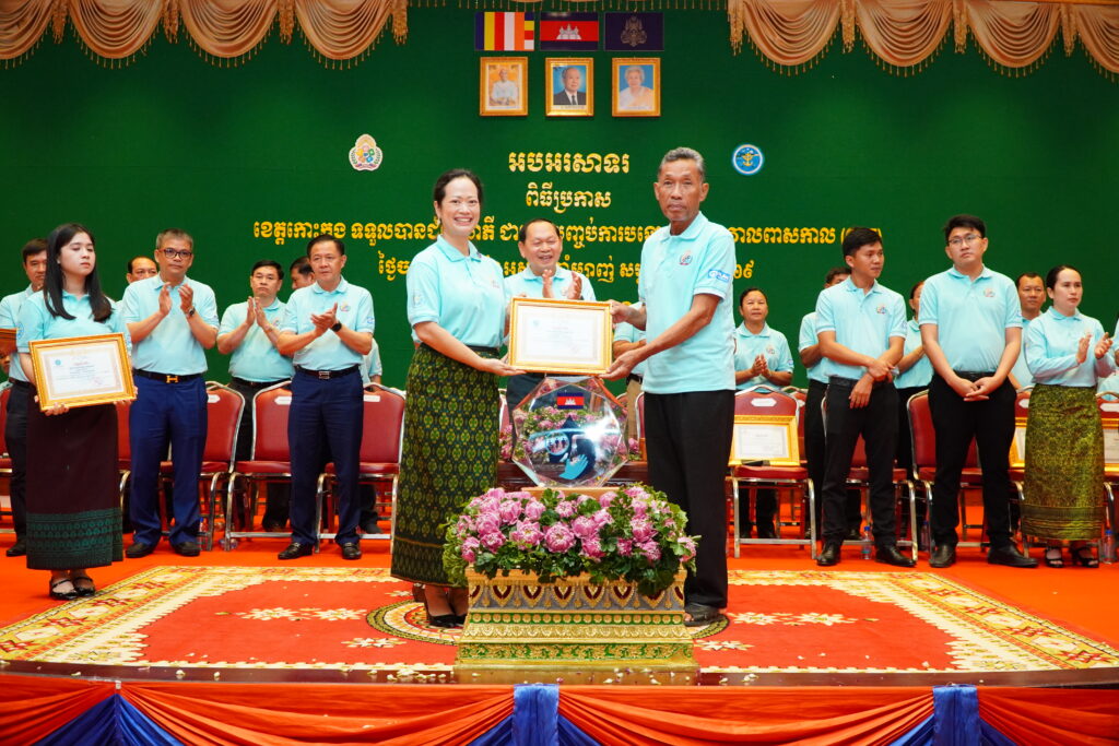លោកជំទាវ ឈី វ៉ា អភិបាល នៃគណៈអភិបាលខេត្តកោះកុង បានអញ្ជើញស្វាគមន៍ ឯកឧត្តម ឆាយ ឫទ្ធិសែន រដ្ឋមន្ត្រី ក្រសួងអភិវឌ្ឍន៍ជនបទ ក្នុងពិធីអបអរសាទរខេត្តកោះកុង ទទួលបានជ័យលាភីជាខេត្តទី២៥ បានបញ្ចប់ការបន្ទោបង់ពាសវាលពាសកាល(ODF)។