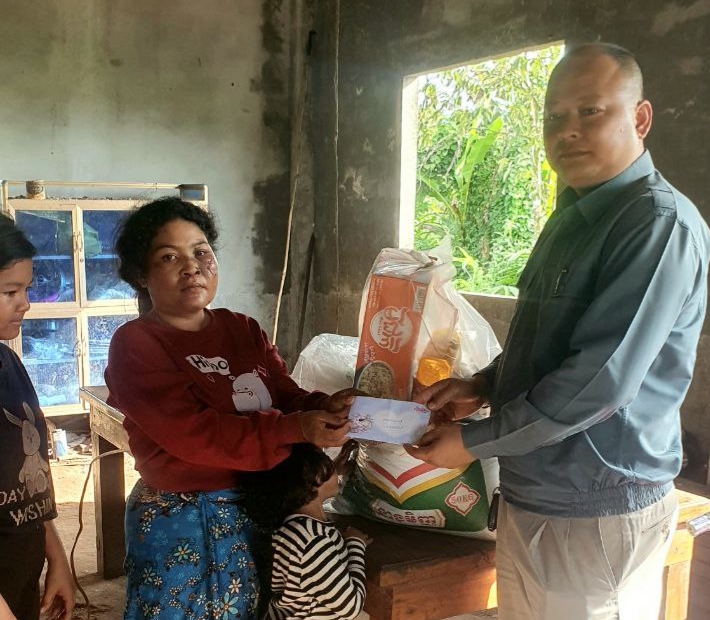 លោក ផង់ សុផាន់ណា មេឃុំឫស្សីជ្រុំ បានចុះសួរសុខទុក្ខគ្រួសារ លោកស្រី ខ្លឹមនន់ អាយុ ៣៧ឆ្នាំ បានគ្រោះថ្នាក់ចរាចរណ៍ដោយលោកបាននាំយកជាសម្ភរនិង ថវិកាចំនួន ១០០,០០០រៀល ជូនដល់គ្រួសារលោកស្រីខ្លឹម នន់ រស់នៅ ភូមិគគីរជ្រុំ ឃុំឫស្សីជ្រុំ ស្រុកថ្មបាំង ខេត្តកោះកុង។