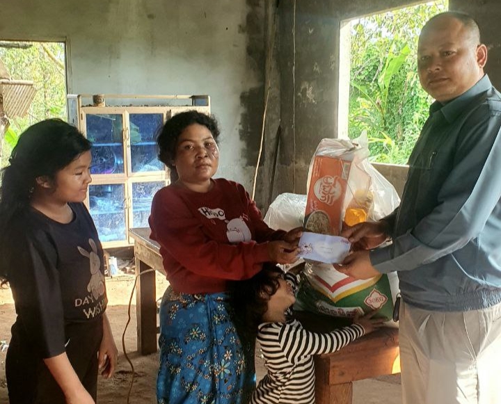 រដ្ឋបាលឃុំឫស្សីជ្រុំ លោក ផង់ សុផាន់ណា មេឃុំឫស្សីជ្រុំ បានចុះសួរសុខទុក្ខ គ្រួសារ លោកស្រី ខ្លឹមនន់ អាយុ ៣៧ ឆ្នាំ បានគ្រោះថ្នាក់ចរាចរណ៍រស់នៅ ភូមិគគីរជ្រុំ ឃុំឫស្សីជ្រុំ ស្រុកថ្មបាំង ខេត្តកោះកុង