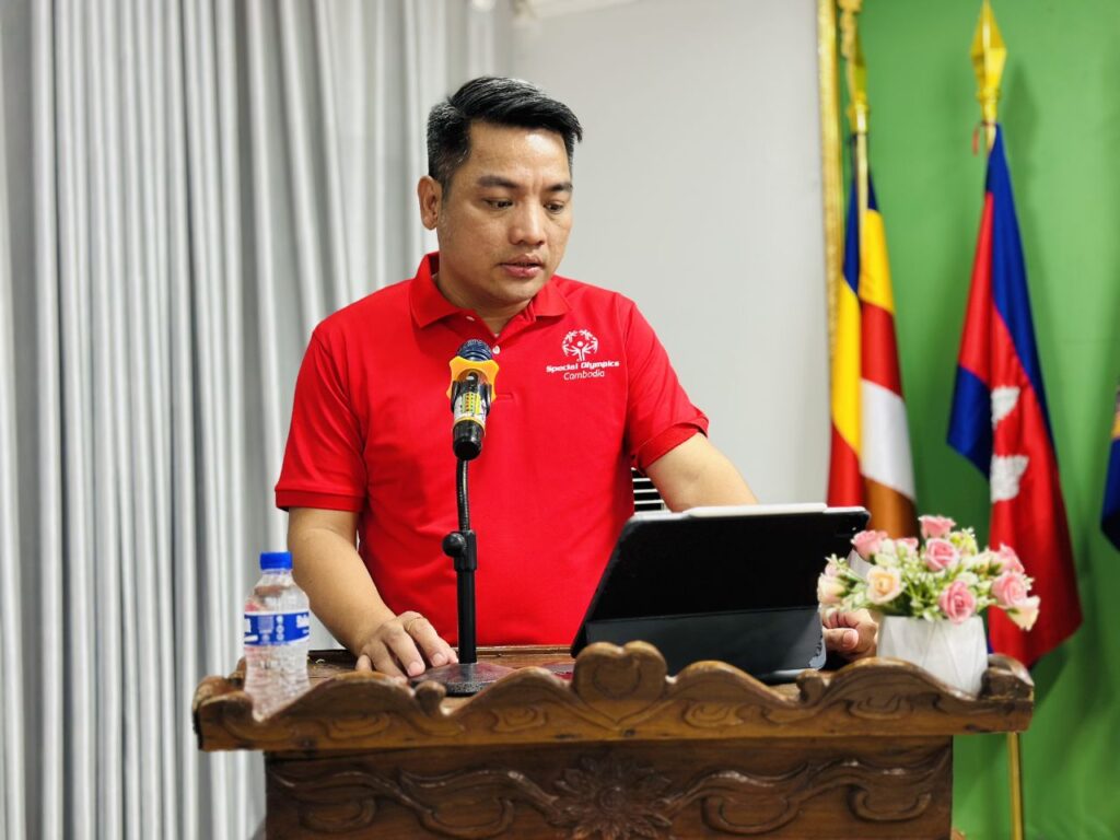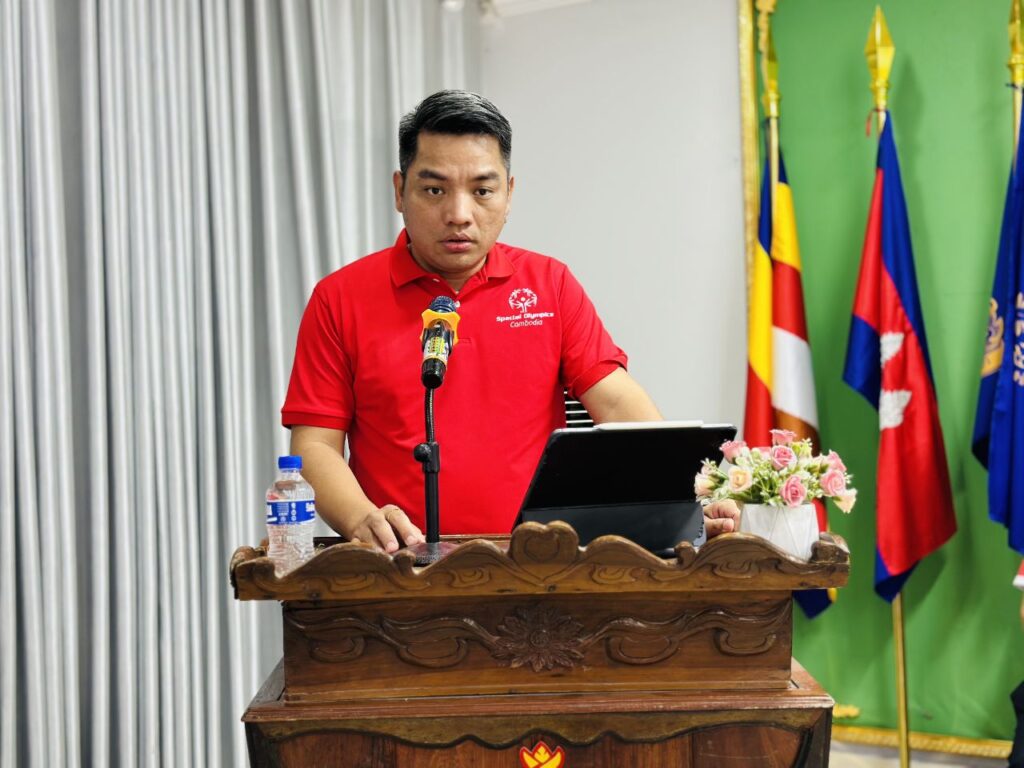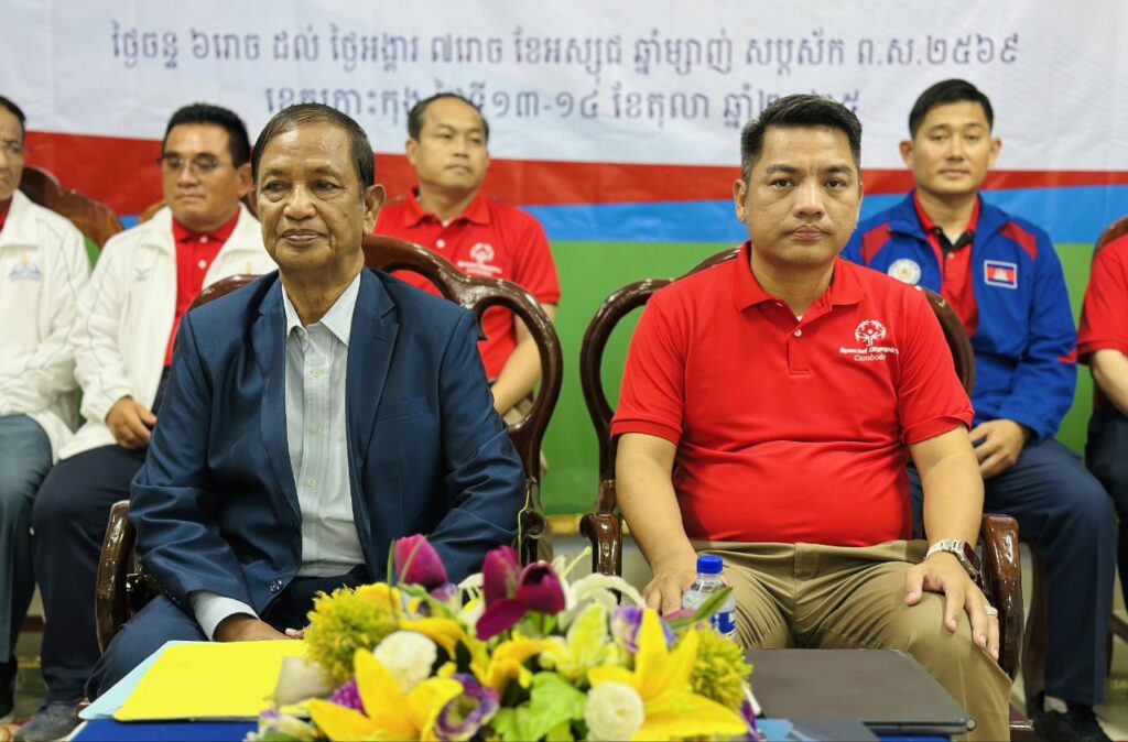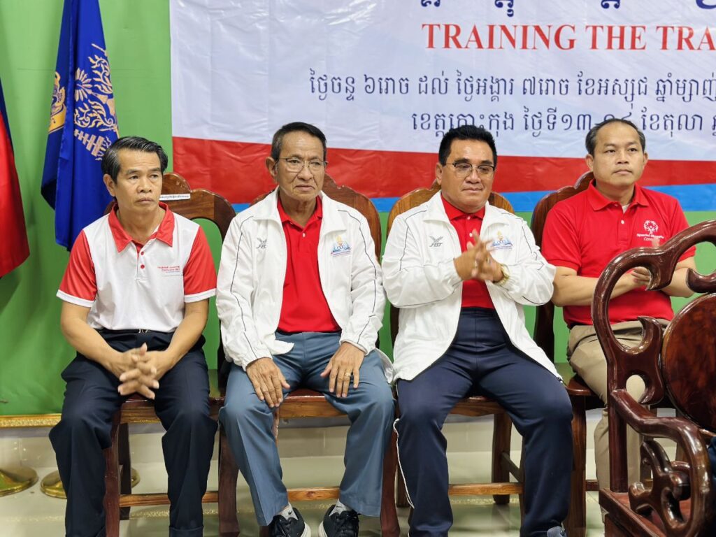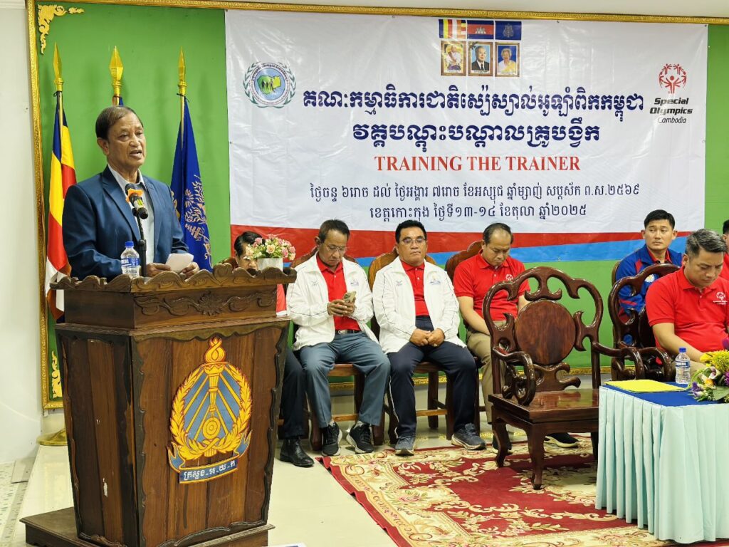 លោក ឈិត រតនៈ អភិបាលរង នៃគណៈអភិបាលខេត្តកោះកុង បានអញ្ជើញស្វាគមន៍ ឯកឧត្តម សែម សុខា រដ្ឋលេខាធិការ ក្រសួងសង្គមកិច្ច អតីតយុទ្ធជន និងយុវនីតី សម្បទា និងជាអនុប្រធានគណៈកម្មាធិការជាតិស្បៃស្បាល់អូឡាំពិកកម្ពុជា ក្នុងពិធីបិទវគ្គបណ្តុះបណ្តាលគ្រូបង្វឹកកីឡាស៉្បេស្យាល់អូឡាំពិក នៅខេត្តកោះកុង