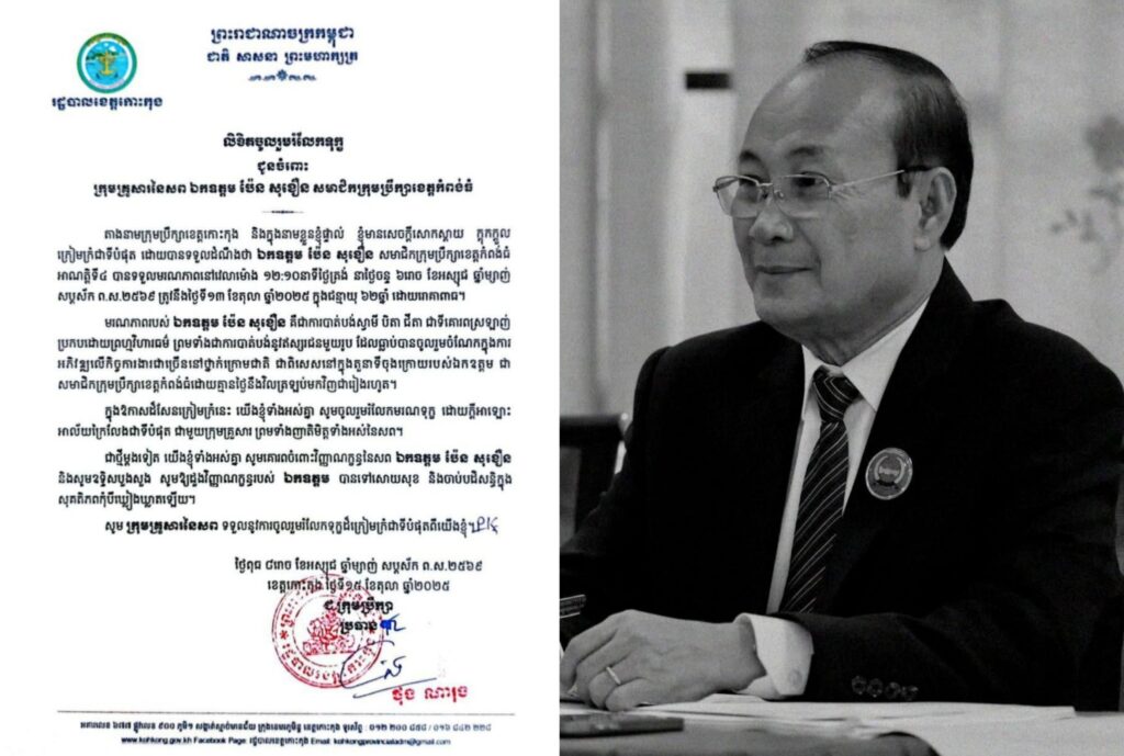 លិខិតចូលរួមរំលែកទុក្ខ ជូនចំពោះ ក្រុមគ្រួសារនៃសព ឯកឧត្តម ប៉ែន សុខឿន សមាជិកក្រុមប្រឹក្សាខេត្តកំពង់ធំ